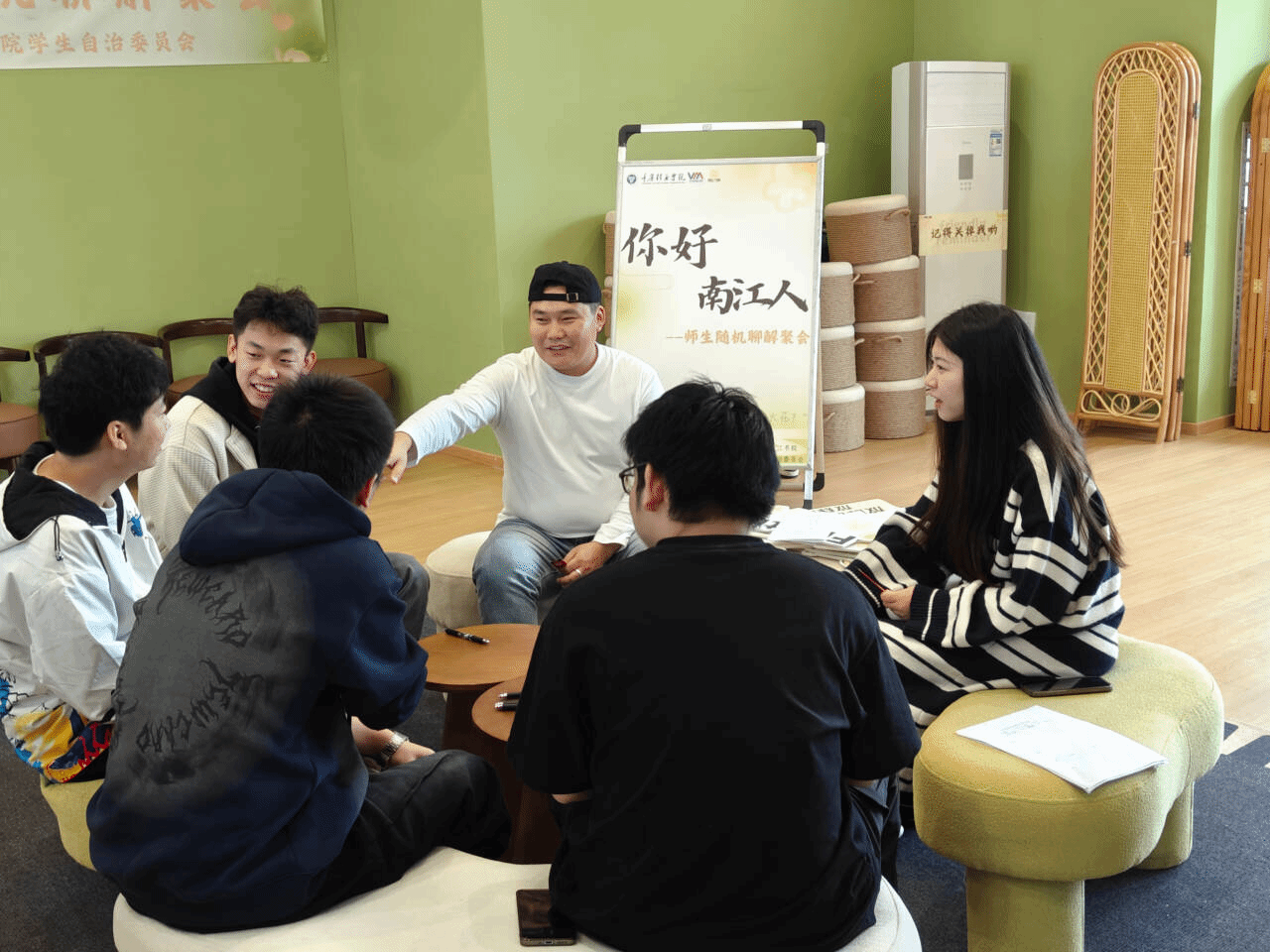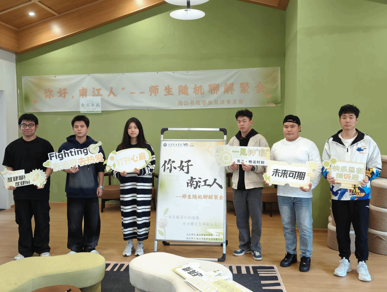 为了创建高效、温馨的师生沟通渠道,让老师了解学生的心理状况,引导学生的职业规划,个人发展,让学生增进对书院的了解和认识,感受到温馨的书院家氛围,南江书院举办了"你好,南江人"师生随机聊解聚会。摒弃传统师生隔阂,倡导平等互动,深化彼此理解与尊重,携手营造和谐共荣的新型师生关系。让每一位成员在轻松愉悦的氛围中,共同享受美好时光,齐心描绘绚丽多姿的成长画卷。