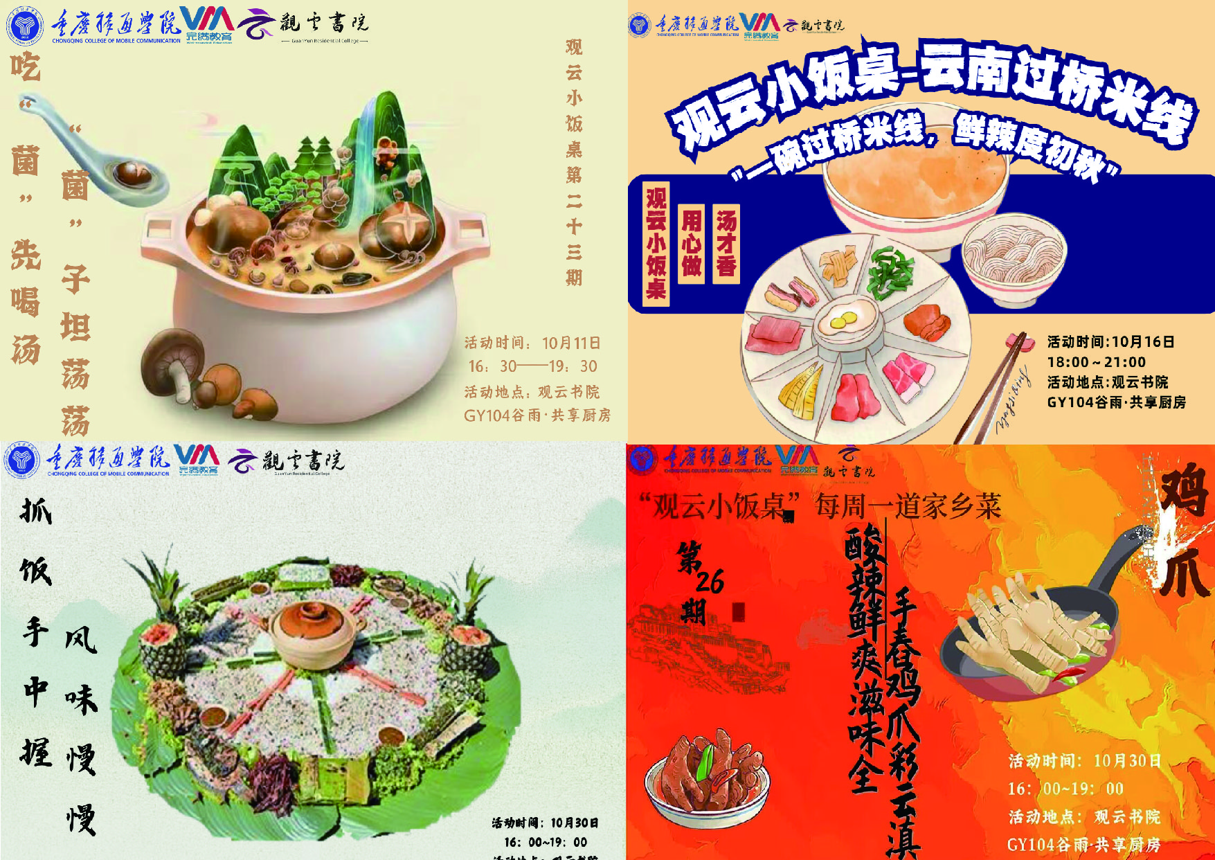 逅山珍,食在山野;数种美撰,至鲜至珍;拥抱辽阔,探索风物。在彩云之南,这片充满魅力的土地上,一场味蕾的奇幻之旅正等待着你。云南美食,就像那绚丽多彩的云南风光一样,独特而迷人每一道菜肴都承载着深厚的文化底蕴和地域特色。观云书院以云南菜为10月主题菜系,开展“观云小饭桌·每周1道地道家乡菜”系列活动23—26期。
