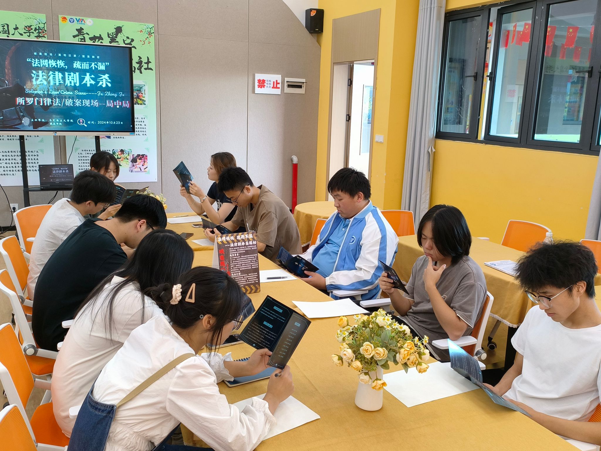 打破传统普法的局限,将晦涩的法律条文与大众潮流、学子兴趣相融合,设计以法律交叉融合不同学科为主题的多类型剧本杀,打造沉浸式的法律学习体验,提高学生风险规避意识和法律素养,培养学生正确的法律观念,实现集教育性、娱乐性、互动性的法律课堂。瀛溪书院联动马克思主义学院开展“法网恢恢、疏而不漏”法律剧本杀活动。本次活动邀请到马克思主义学院马克思主义基本原理教研室黄必琼、向娇两位老师,让学生感受到破除迷雾的过程中法律的力量。