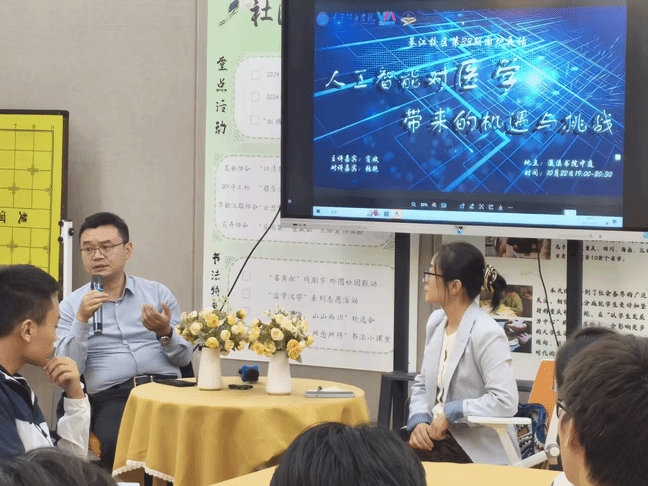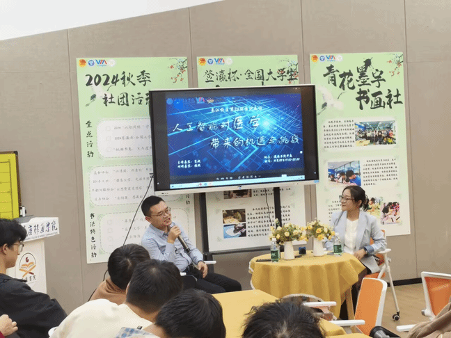 阿里巴巴创始人马云先生曾说,“智能不是万能的,但是没有智能是万万不能的”。在当今科技飞速发展的时代,人工智能在医学领域的应用正以前所未有的速度拓展,带来了令人瞩目的机遇,同时也引发了一系列严峻的挑战。本次活动特别邀请了重庆邮电大学教授肖斌与我校通识教学部副主任张艳,两位嘉宾就本期主题“人工智能对医学带来的机遇与挑战”与书院学子共同进行了全方位、多角度的探讨,一同领略智能新时代在医学上的体现!就此,为帮助同学们适应时代潮流,培养全球视野,瀛溪书院第33期围炉夜话活动于2024年10月22日19:00在瀛溪书院回声报告厅正式开展。