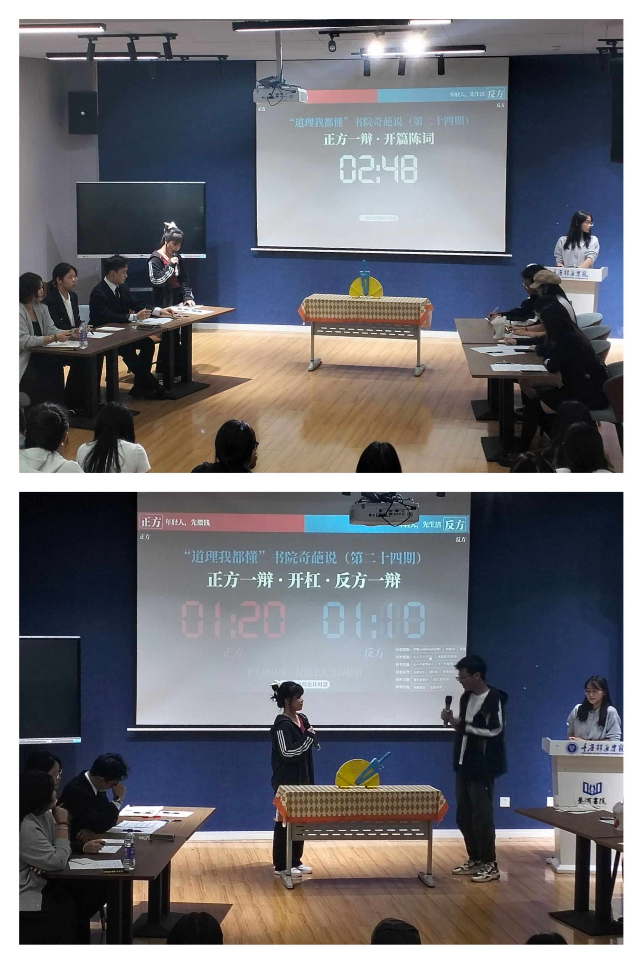 在当代人的生活中,是应该先好好享受生活去买自己喜欢的东西,做自己想做的事情,还是趁着年轻多攒点钱买车买房,给自己建造一条退路再躺平。当物质与精神始终无法满足双方的前提下,年轻人会如何选择?围绕这一辩题,綦河书院与最强大嘴辩论社于10月23日在綦河书院二号楼苍山·阶梯教室举办了第二十四期“道理我都懂”书院奇葩说活动——“年轻人应该先攒钱后生活还是先生活后攒钱”。綦河书院以“构想”为培养基点打造书院奇葩说栏目,紧跟当下社会时事热点,旨在通过“立论”,“对杠”,“观众互动”,“结辩”的方式培养同学们的故事构想力,语言组织能力及表达能力。