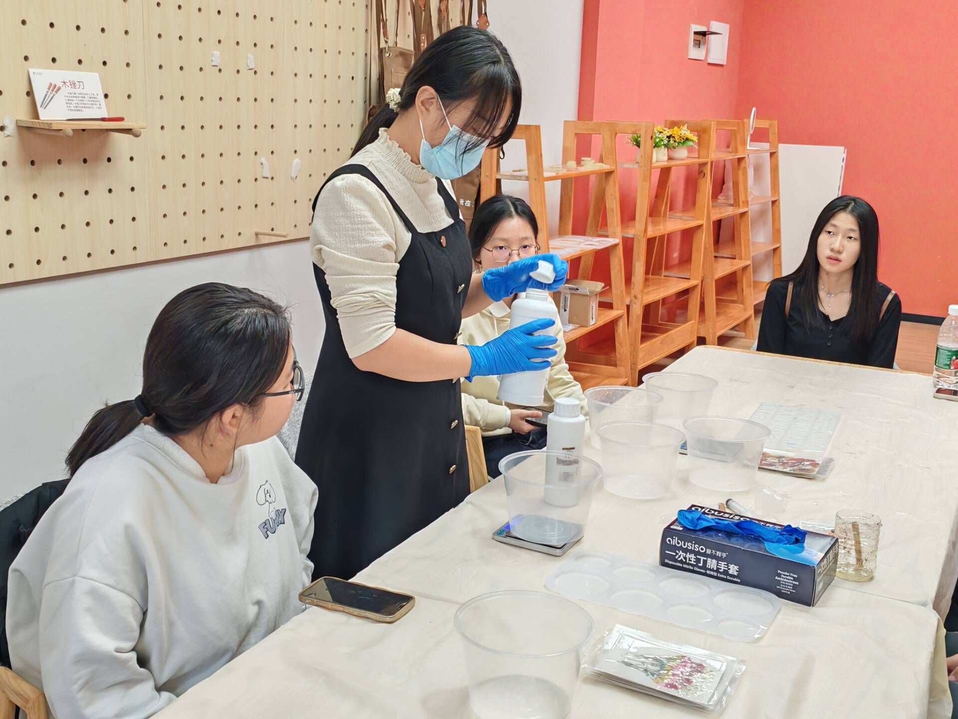 滴胶,是一种结合了技术性和艺术性的手工艺制作方式,通过环氧树脂的固化特性来创作出既实用又美观的工艺品。玉棠书院带领书院学子于10月23日在玉棠书院 YT104做个东西造物坊开展“长物志生活手工系列——第十一期滴胶艺术,凝固时光之美”活动。