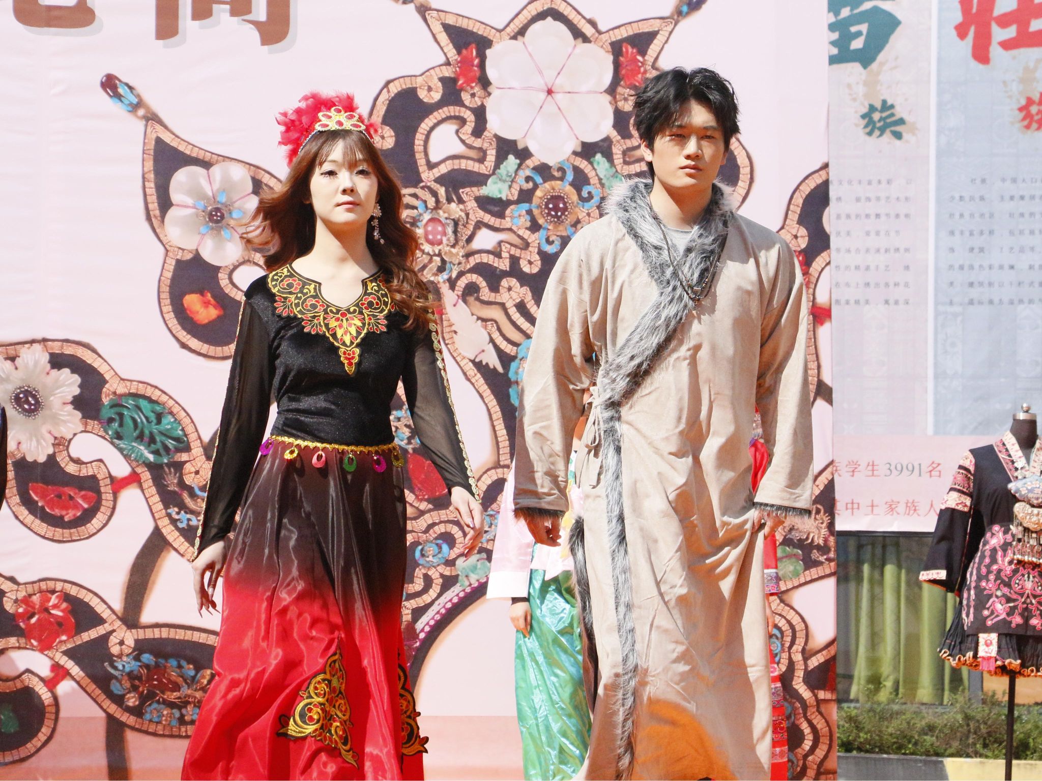 T台上,少数民族服装走秀拉开活动的帷幕:藏族长袍宽袖的厚重、苗族的银饰叮咚、彝族的刺绣斑斓、维吾尔族绸裙的灵动……每一件服饰都像一幅流动的历史画卷,诉说着民族文化的深厚底蕴。