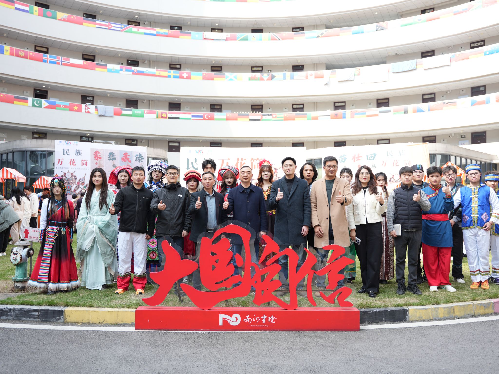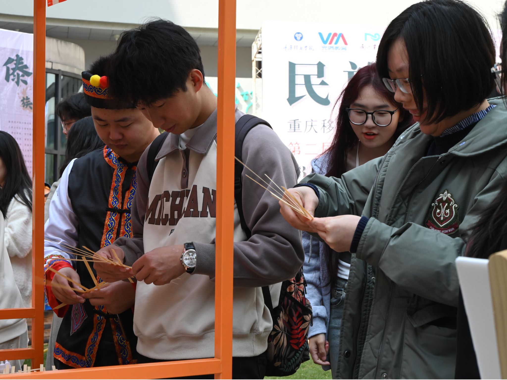 执“勠力同心,和衷共济"之笔,共绘民族团结"同心圆”。56个民族如同一朵花上的花瓣,瓣瓣不同、却辦瓣同心。3月19日,由中共重庆移通学院委员会统战部、书院部联合主办,南湖书院、少数民族联谊会承办的“民族万花筒·重庆移通学院第二届少数民族文化体验日”在南湖书院中庭开启了一场民族文化盛宴。非遗展示、民族集市、互动体验等活动像万花筒中不断变幻的图案,将各民族的文化拼成一幅五彩斑斓的画卷;异科师生穿梭其中,仿佛手持万花筒,轻轻一转,便看到藏族哈达的洁白、苗族银饰的闪耀、蒙古族马头琴的悠扬,每一片文化碎片都闪耀光芒又紧密相连,让大家在七彩光谱中解码中华民族共同体的文明基因,感受多元文化的独特魅力。