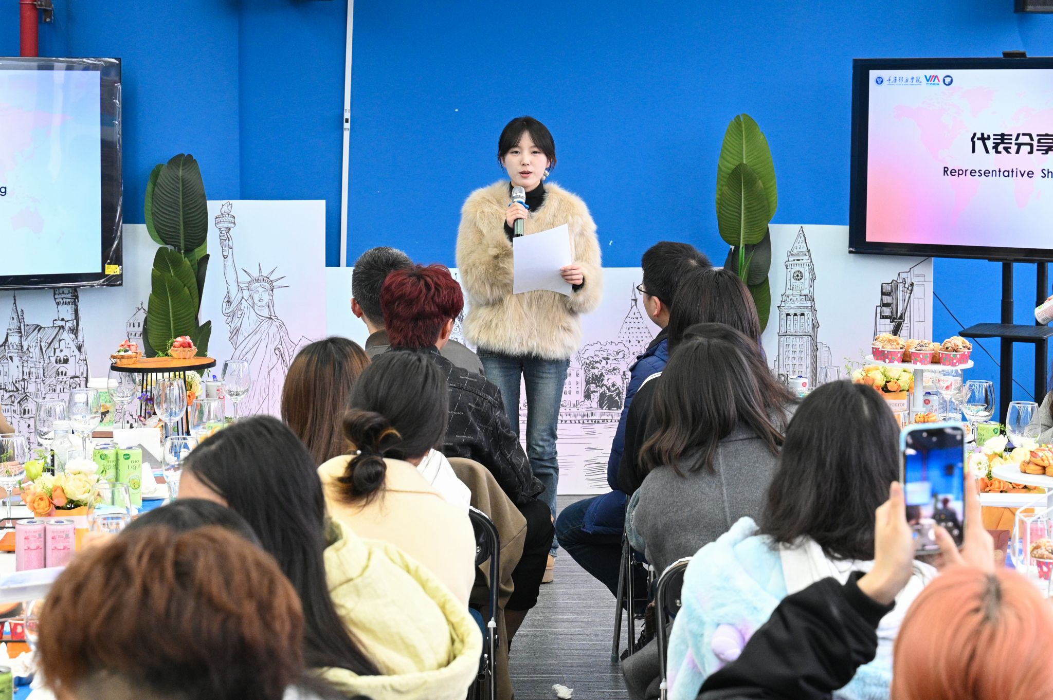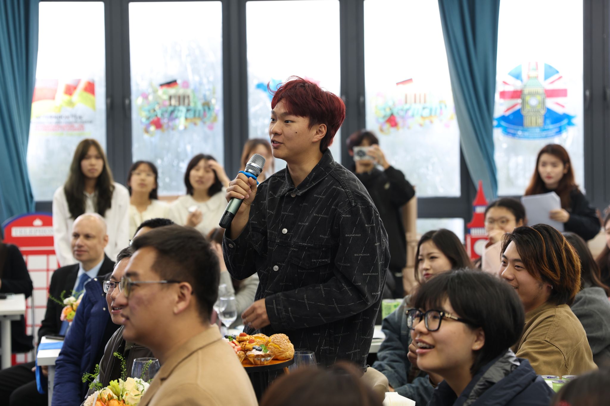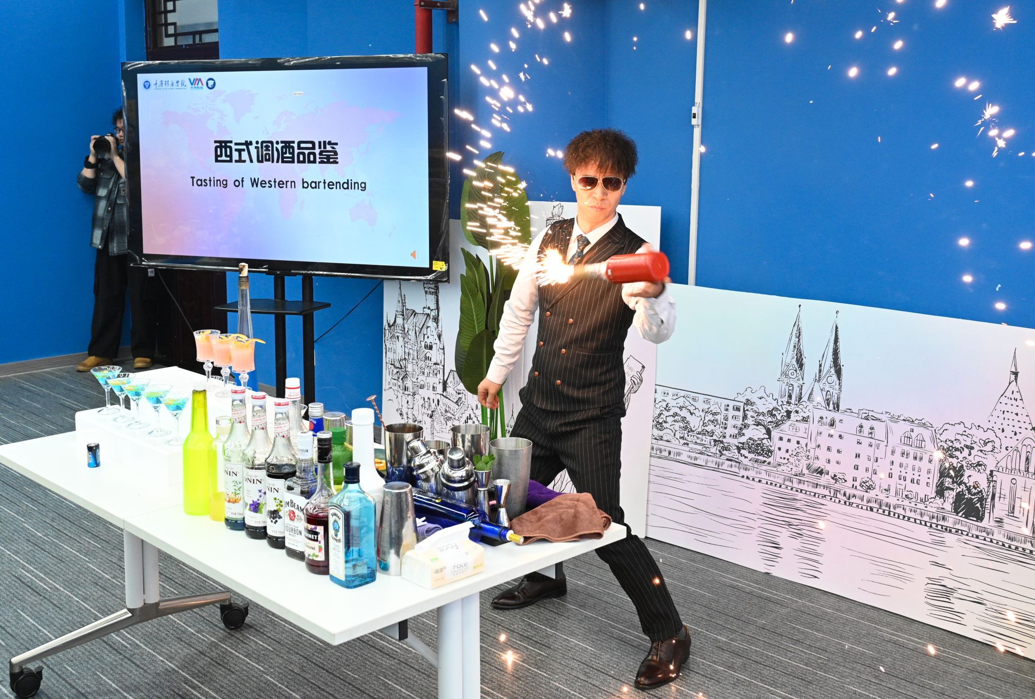 本期校长面对面专题活动以“探索国际化的N种可能”为主题,通过回顾往期海外游学项目经历,烘托七十余名师生的国际交流热潮。来自远景学院、远景书院的朱佳怡同学以她自己在德国留学的奇妙之旅为主题向在场师生分享了她的海外游学经验,感叹重庆移通学院暑期海外游学项目带给她的全新人生体验,并对即将出发前往德国的2025年暑期海外游学学子们献出美好祝福。统战部欧美同学会(留学人员联谊会)会长向觅老师从学校介绍、学习生活分享、课程讨论等方面全英文描绘自身留学香港的亲身感受,提高在场师生的国际交流氛围。来自德国工程学院的德语外教Julio Cesar Cervantes以诙谐幽默的外语开场,多维度呈现出德国的地理人文与科技发展,带给在场师生对德国的美好遐想。调酒师阳世海从鸡尾酒起源、调酒师职业介绍、酒类设计等,和师生共同品鉴西式酒类文化,并通过专业的调酒表演将现场国际化氛围拉到高潮。