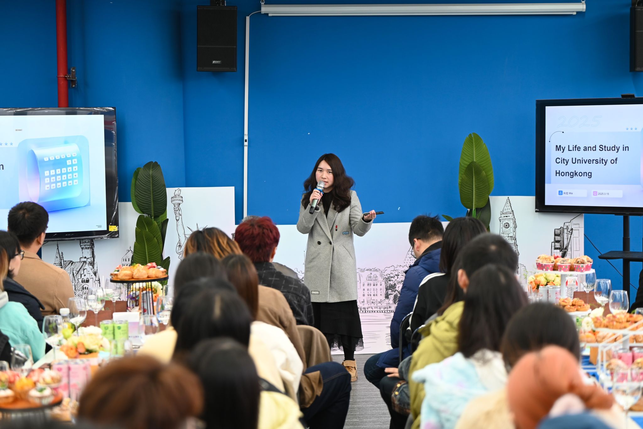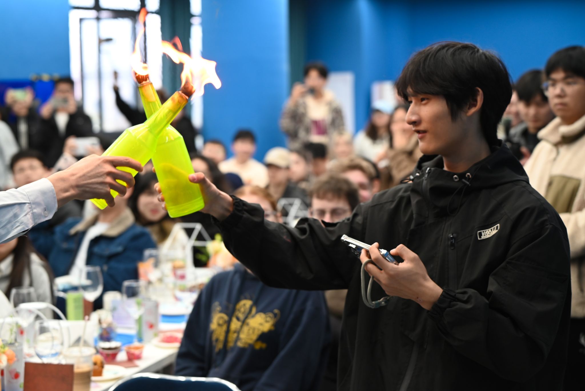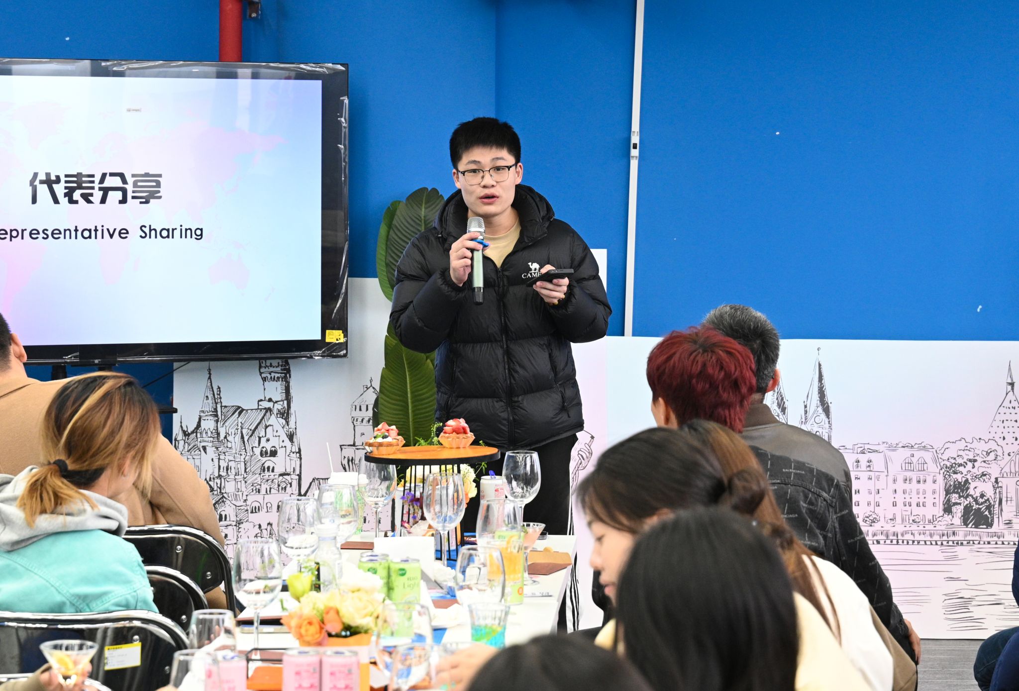 本期校长面对面专题活动以“探索国际化的N种可能”为主题,通过回顾往期海外游学项目经历,烘托七十余名师生的国际交流热潮。来自远景学院、远景书院的朱佳怡同学以她自己在德国留学的奇妙之旅为主题向在场师生分享了她的海外游学经验,感叹重庆移通学院暑期海外游学项目带给她的全新人生体验,并对即将出发前往德国的2025年暑期海外游学学子们献出美好祝福。统战部欧美同学会(留学人员联谊会)会长向觅老师从学校介绍、学习生活分享、课程讨论等方面全英文描绘自身留学香港的亲身感受,提高在场师生的国际交流氛围。来自德国工程学院的德语外教Julio Cesar Cervantes以诙谐幽默的外语开场,多维度呈现出德国的地理人文与科技发展,带给在场师生对德国的美好遐想。调酒师阳世海从鸡尾酒起源、调酒师职业介绍、酒类设计等,和师生共同品鉴西式酒类文化,并通过专业的调酒表演将现场国际化氛围拉到高潮。