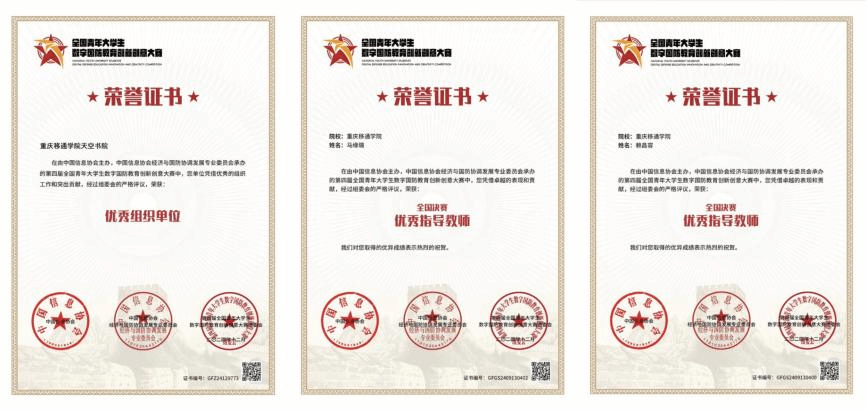 本次大赛面向全校征集作品200余件,最终斩获全国一等奖7名、二等奖17名,重庆赛区一等奖4名、二等奖3名、三等奖18名,天空书院获评“优秀组织单位”称号,赖昌容、马缘璐等5名老师获评“优秀指导教师”,张旭获评“优秀组织教师”。