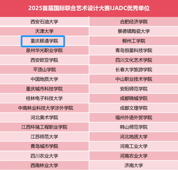 在2025年寒假期间,由天空书院学生自治委员会学生主席郑佳牵头,组织书院学生团队参与“2025国际联合艺术设计大赛”,赛前为大家讲解自己以往参赛经验和小技巧分享,并在此次赛事中全程跟进,创作过程中为干部干事提供指导和帮助,充分发挥“以赛代练”的作用,最终在本届赛事中斩获全国金奖2项,银奖9项,铜奖17项,重庆移通学院获“优秀单位”称号。
