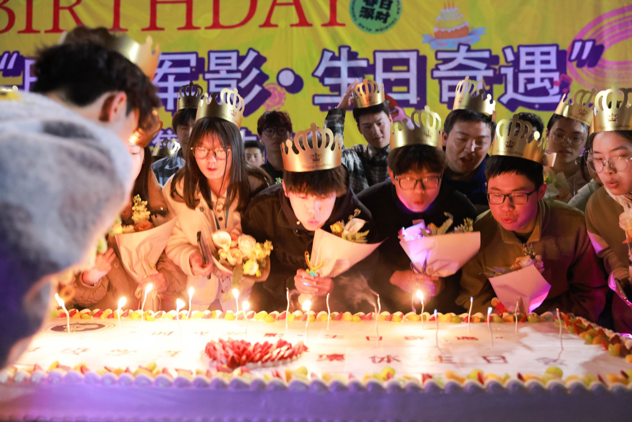随着社团表演落幕,一场精心设计的“时空指令”突然启动。“全体注意!念到名字的老师和同学请立刻上台!”主持人掷地有声的宣告引发全场期待。当被点名的师生略带忐忑列队时,背景音乐突然切换,高达五米的生日主题喷绘与祝福帷幔瞬间落下,3月师生集体生日会惊喜揭幕!“惊喜不惊喜!意外不意外!”主持人携漫天彩带登场,台下欢呼如浪潮涌动,台上寿星们从错愕到惊喜,有学生捂嘴泪目:“以为要挨训,结果收到全场的祝福,这反转太破防了!”在随机采访环节,一位寿星动情表示:“很感动!很惊喜!很移通!很完满!”