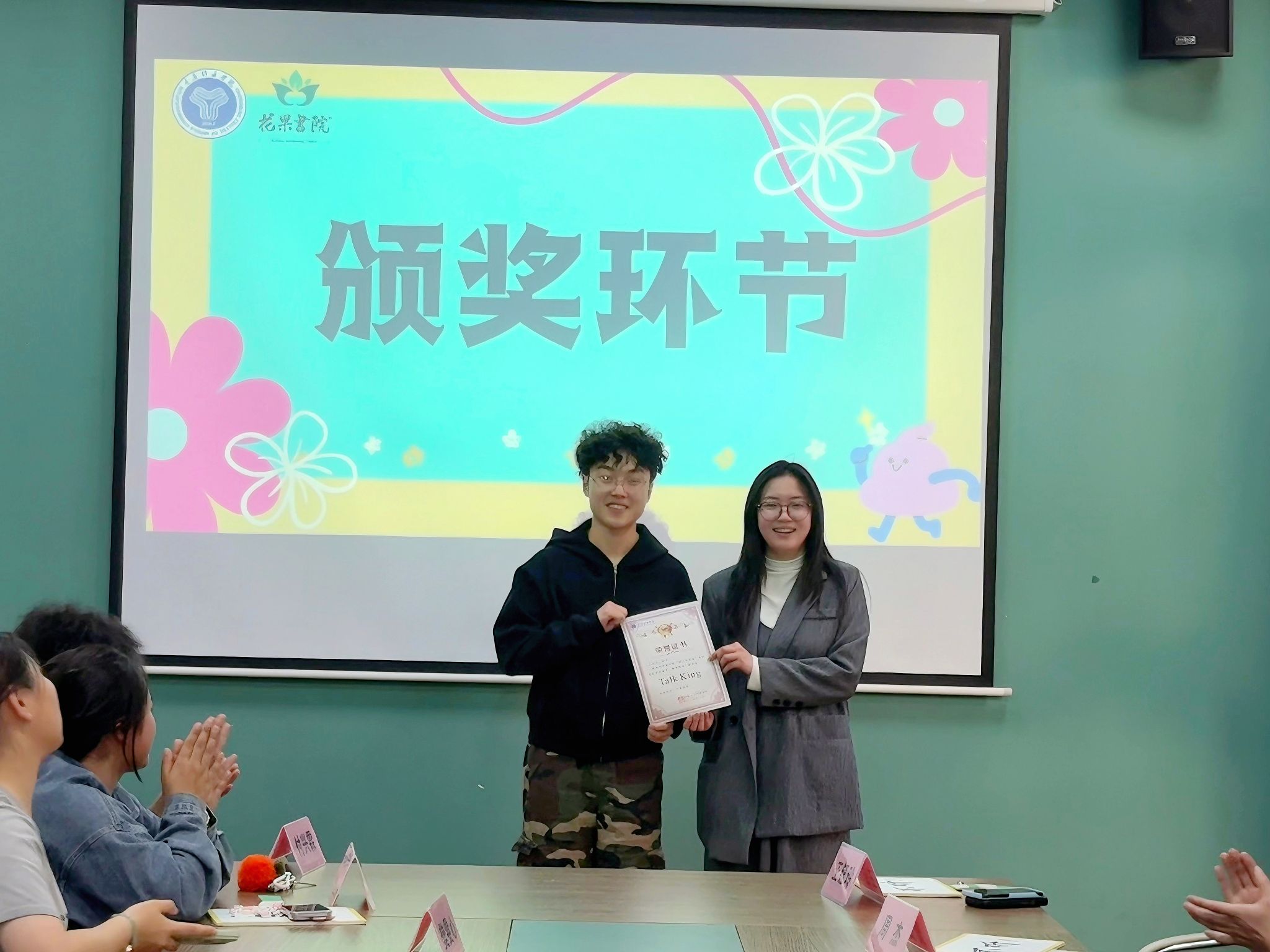 本期青年非正式会谈在同学们不绝于耳的讨论声中接近尾声,花果书院胡霁贤老师也针对同学们的分享作出了总结,鼓励同学们积极调节自我情绪,适当借用辅助工作,以积极的心态享受大学生活。在本次青年非正式会谈中王钰玲同学的表现得到了现场同学们的认可,并荣获“Talk King”的称号。“电子布洛芬”是当代大学生应对心理压力的典型产物,其本质是虚拟世界对现实情绪的代偿机制,作为大学生在享受其疗愈价值的同时,需理性看待这一现象,乐享完满大学生活。