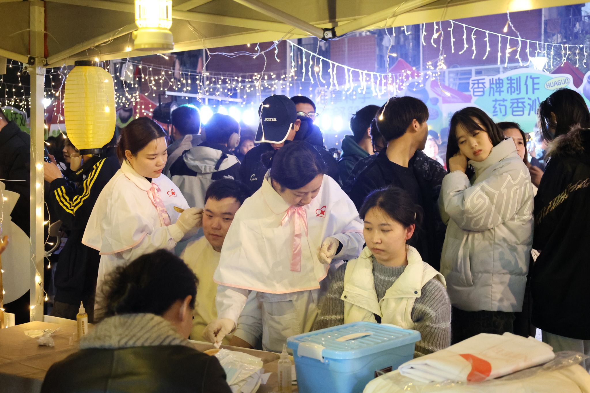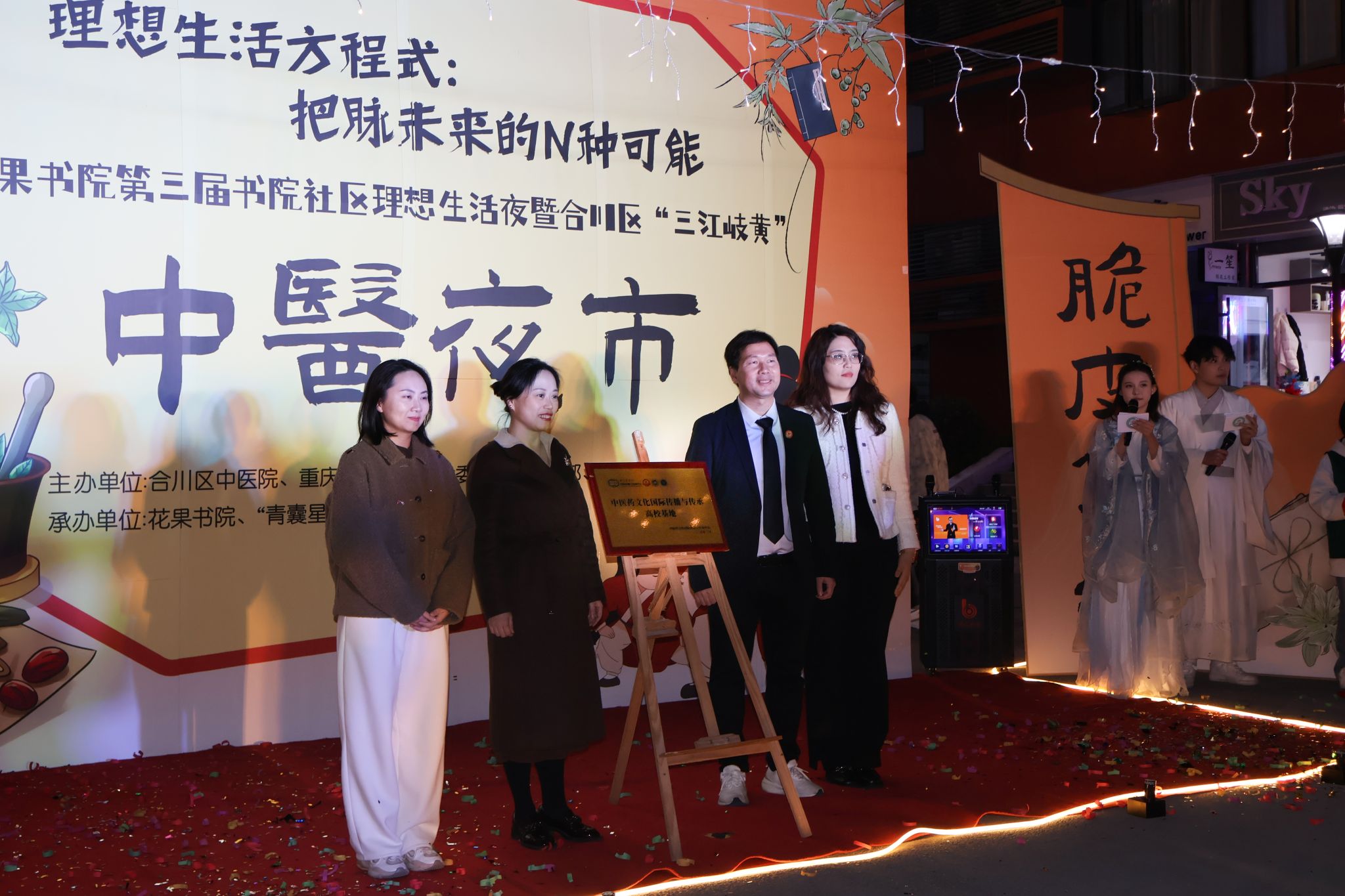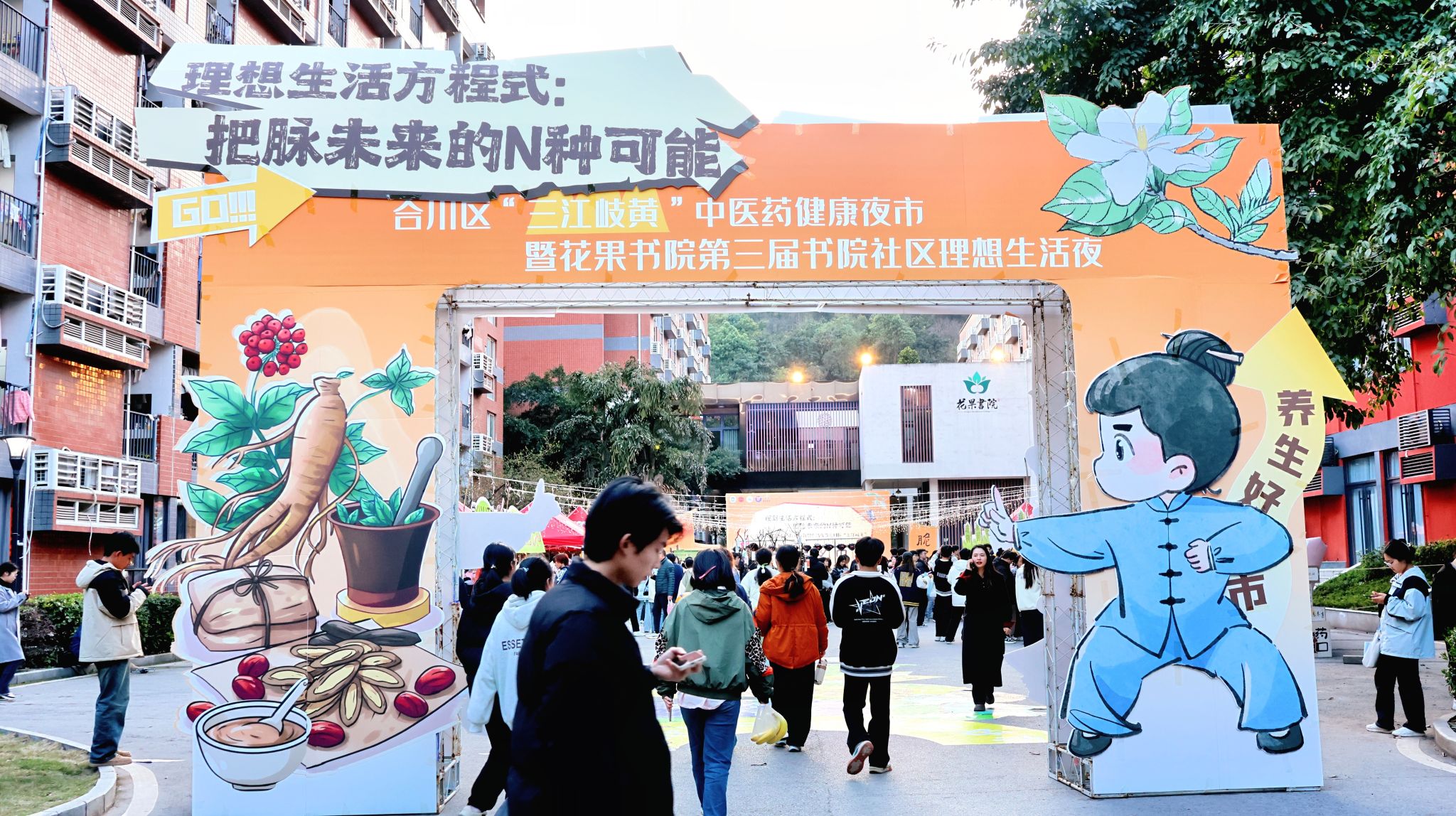 为弘扬传统中医药文化,打造书院社区健康新地标,引导移通学子感受中医智慧与健康生活的魅力。3月19日19:00,由合川中医院、重庆移通学院工会委员会、书院部、艺术传媒学院主办,花果书院、“青囊星火”志愿服务专项支队承办的“理想生活方程式:把脉未来的N种可能”合川区“三江岐黄”中医药健康夜市暨花果书院第三届书院社区理想生活夜,在花果书院小广场顺利举行。现场800余名移通师生在夜市烟火气中体验“中式养生”新风尚,让传统智慧与青春活力在书院社区上演超燃碰撞,定制移通专属的“新中式养生”潮流指南。