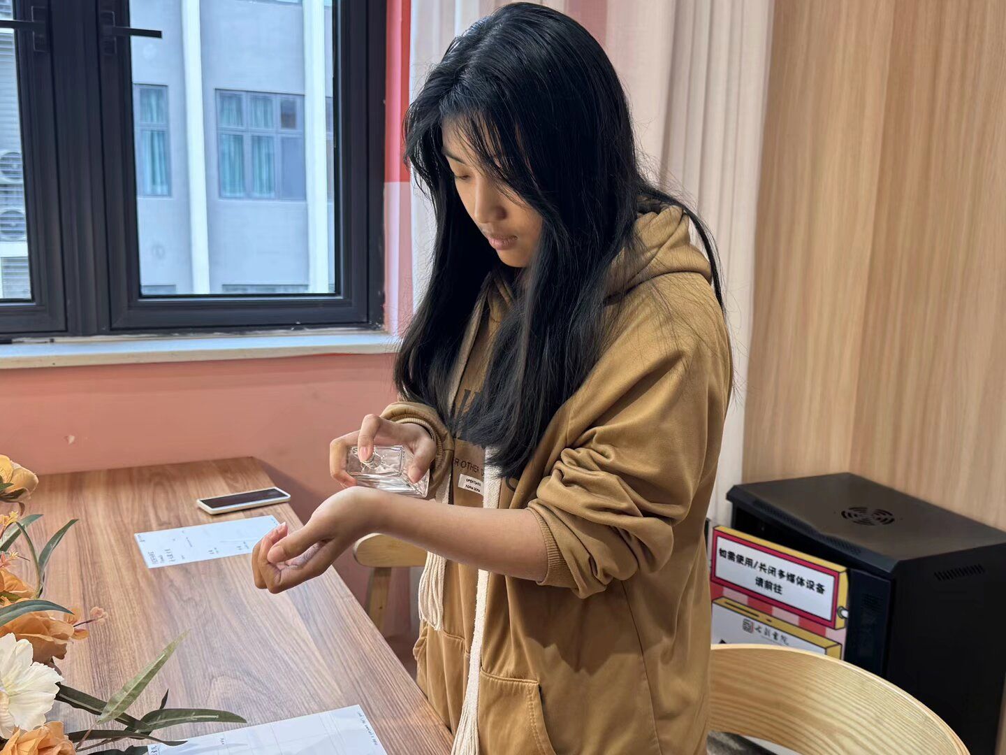 通过整个活动学习,徐徐老师让同学们了解到,香水是个人风格和生活美学的体现,适合不同场合。它能展现个性和品味。职场适宜淡雅沉稳香调。木质调的雪松、檀香凸显可靠专业;柑橘调凭借清新果香带来活力与亲和感,让人在职场交流更从容。休闲时,香水选择可随性。花香调的玫瑰、茉莉带来愉悦;果香调借草莓、柠檬营造活泼氛围。社交场合需要独特迷人的香水。浓郁东方调的沉香、琥珀魅力非凡;独特调配的花香调也风情万种。约会时,温柔甜美的香调是营造浪漫的法宝。美食调的焦糖、巧克力带来温暖甜蜜;玫瑰花香调经典浪漫。