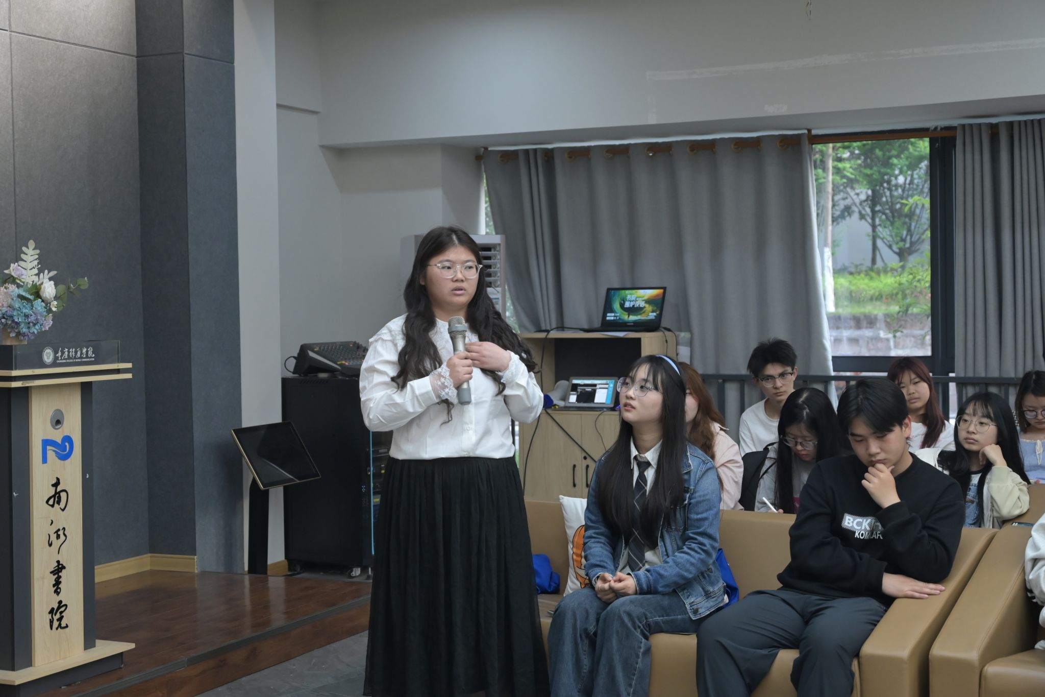 “当兴趣与专业背道而驰,我们该如何平衡?”来自淬炼商学院、鱼城书院的赵月娇同学在现场提出了自己的困惑。王教授表示,冲突不过只是成长的韵脚,在未来的教育与职业发展过程中,我们可以进一步探索自己的兴趣和能力所在,抓住时代机遇,在爱好中充分发挥自身潜力。陶老师认为重庆移通学院“四位一体双院制+特色课程”的人才培养模式为大家提供了自我探索的平台,那些关于未来的困惑,像被风吹乱的蒲公英,终会在某个清晨找到自己的山坡。