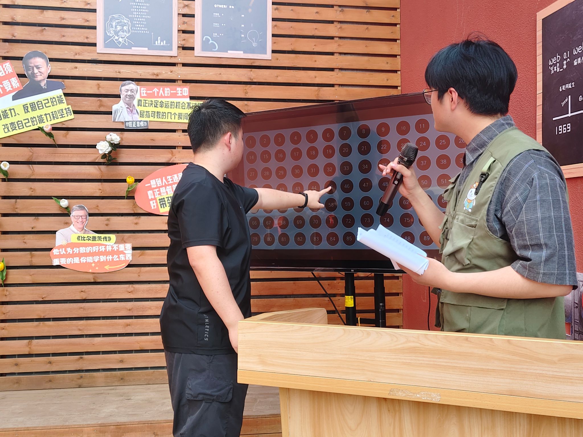 随后,活动进入了高潮环节——卡片式传记解读。每位参与者都有机会抽取智能书签及任务卡,书签上附有大咖书籍的经典语录和观看大咖生平简介的二维码,而任务卡则隐藏着与大咖相关的趣味知识竞赛挑战任务。抽中智能书签的同学,需结合大咖生平简述、书籍核心观点解读及自身经历,分享自己的感受与启发;而抽中任务卡的同学,则需在限定时间内完成有关大咖阅读的知识竞答。这一环节不仅考验了参与者的知识储备和快速应变能力,更激发了他们的思维火花和表达欲望。经过激烈的角逐,最终评选出了最佳分享者和大咖知识达人,他们分别获得了由3D打印技术制作的“大咖徽章”和个人定制化纪念品。