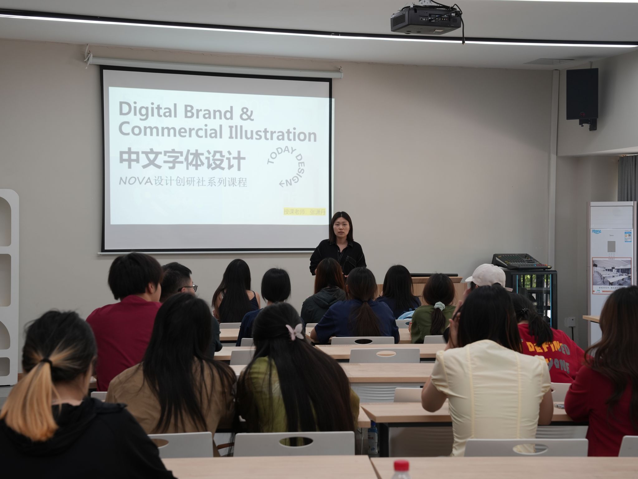 NOVA设计创研社作为南湖书院内充满活力与创意的设计实践工坊,是书院“连接点的互动体系”中的重要一环。它专注于多形式创意设计的探索与研究,涵盖字体设计、版式设计、海报设计、文创IP设计等多个领域,通过丰富的讲座和实训项目,为学生搭建起提升设计思维和实操能力的平台,这与南湖书院“协同育人”的理念高度契合。