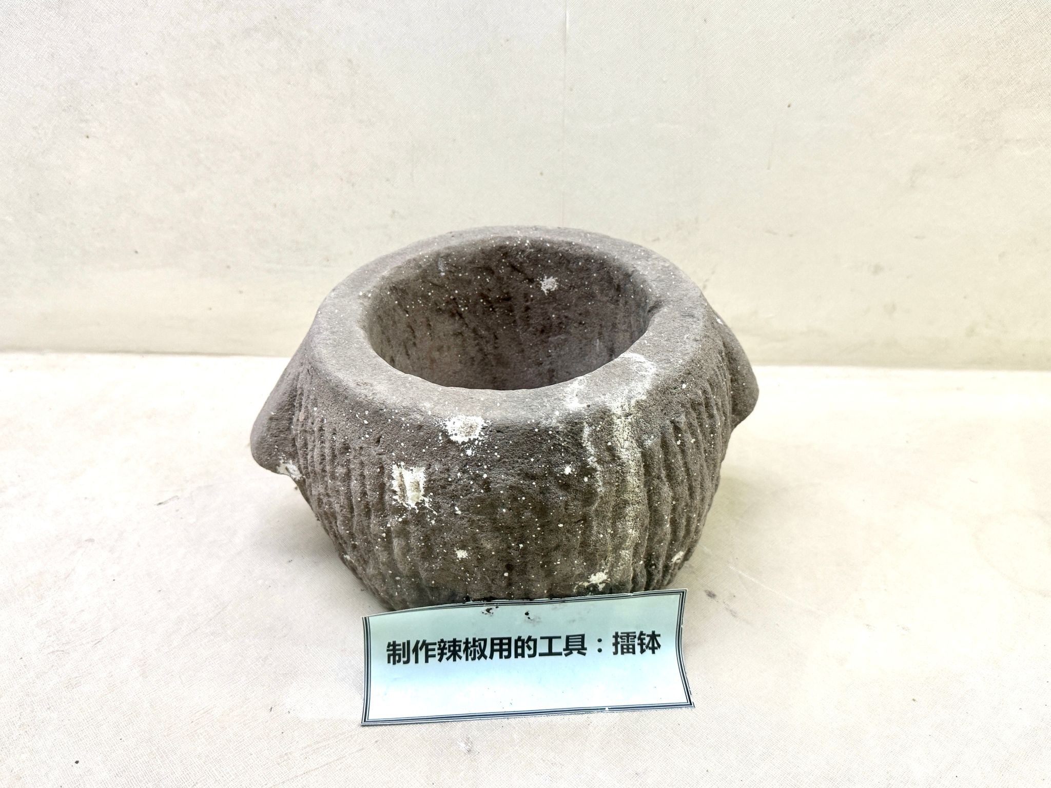 展柜中,擂钵——巴渝先民“舂海椒”的智慧结晶,成为古今对话的味觉信使。木杵与石臼相击,迸发的不仅是辛香,更是传统匠造与现代创意的交响。岁月留痕的擂钵边缘,诉说着从家庭作坊到现代工厂的产业进化史,一包香脆椒里,藏着辣椒文化的当代变形记。当“辣瘾”基因被写进城市味觉DNA,川渝人用一包香脆椒完成的,不仅是口腹之欲的满足,更是将生活烹炸成可随身携带的烟火气。书院学子们在擂钵声声里触摸文明脉动,辣椒,早已超越食材范畴,成为淬炼千年的精神图腾。