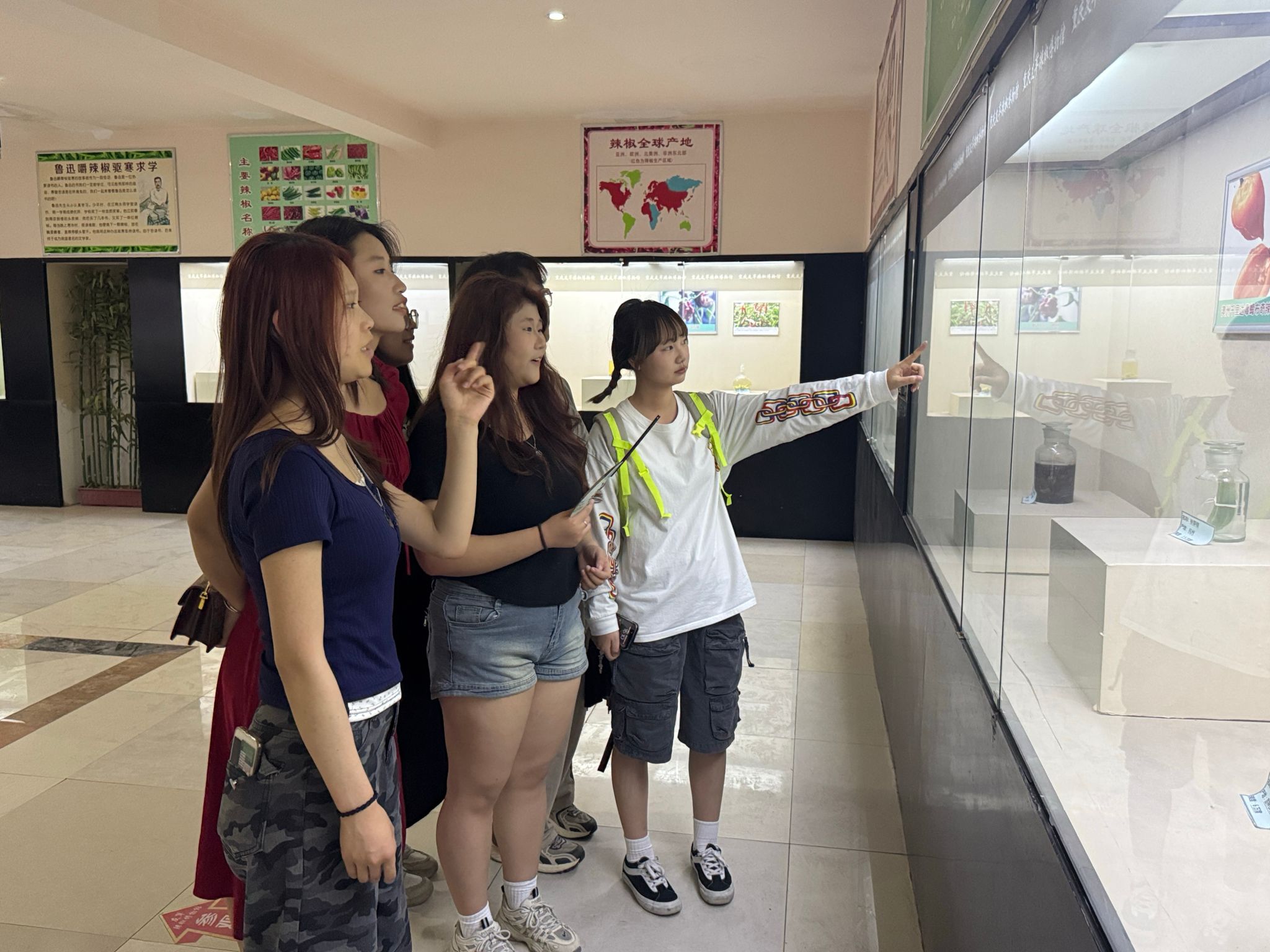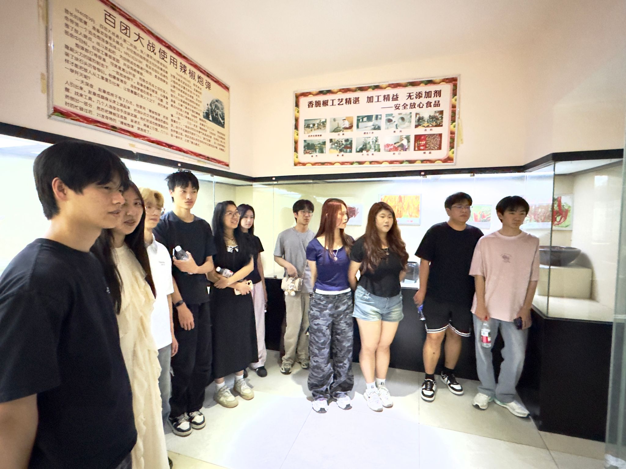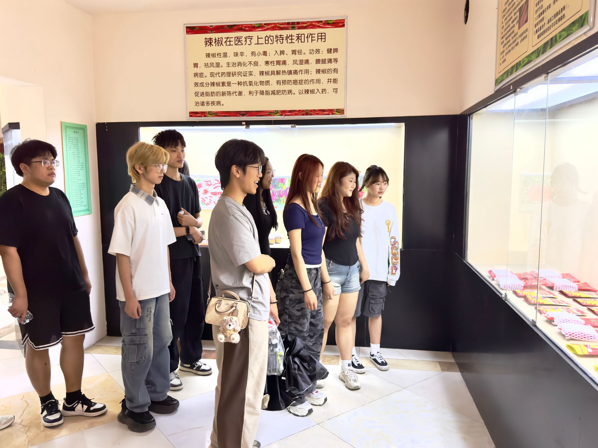 重庆市合川区友军辣椒博物馆,作为西南首座辣椒主题文化展馆,以百余种辣椒标本、传统农耕器具及非遗辣椒制品为载体,构建起一座“红色文化殿堂”。活动伊始,2022级财务管理专业王春艳同学以“哥伦布大交换”为叙事起点,将辣椒从美洲到川渝的500年迁徙史娓娓道来。指尖触碰风干辣椒的瞬间,师生们触摸到的不仅是植物表皮的纹理,更是人类迁徙、文化交融与味觉革命的时空印记。“辣椒颂”墙前驻足,方知辣椒不仅是调味品,更是川渝人“以辣为魂”的精神图腾——火锅蒸腾的烟火中,咀嚼的不仅是食材,更是巴蜀大地的生命律动。