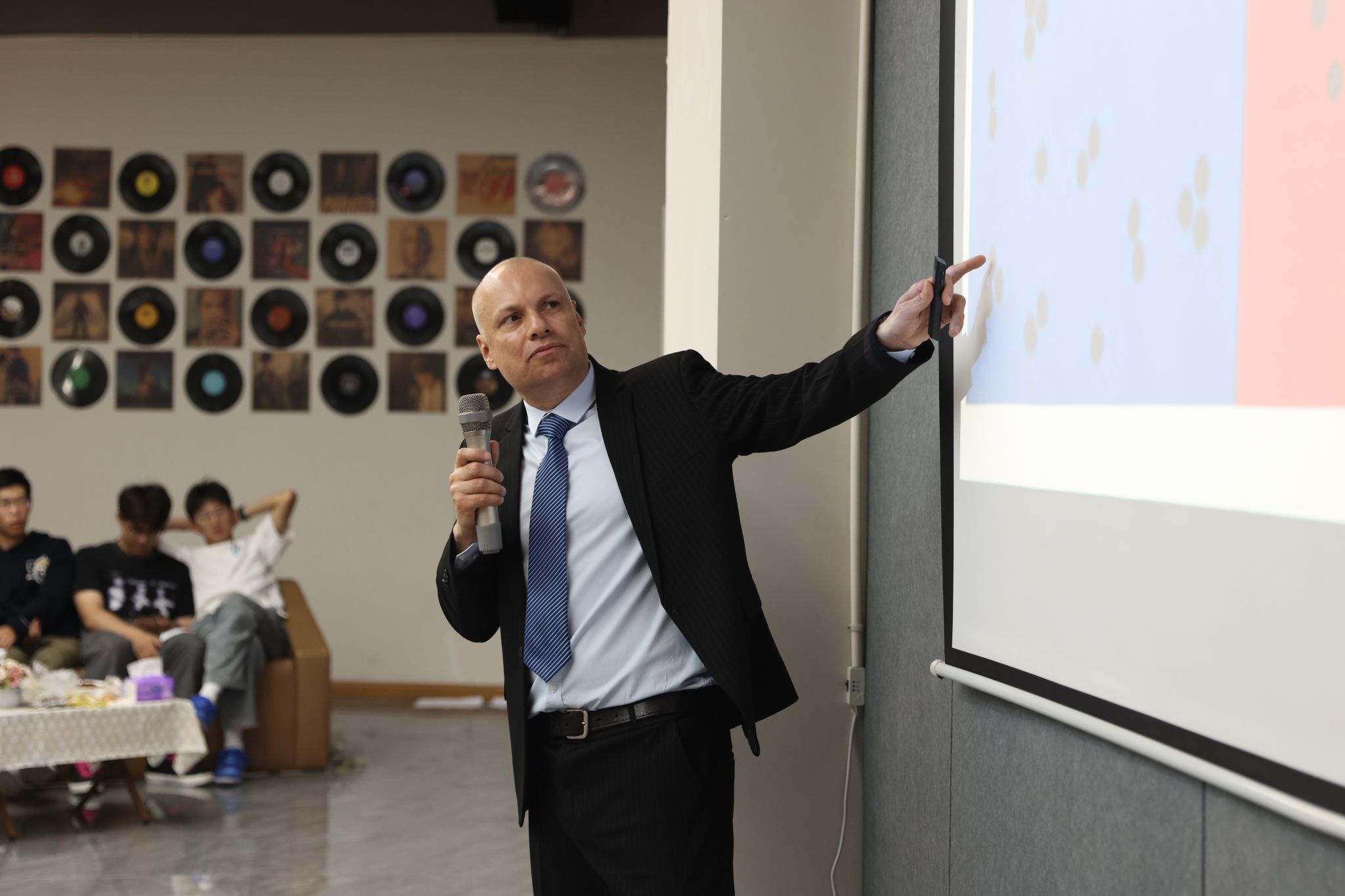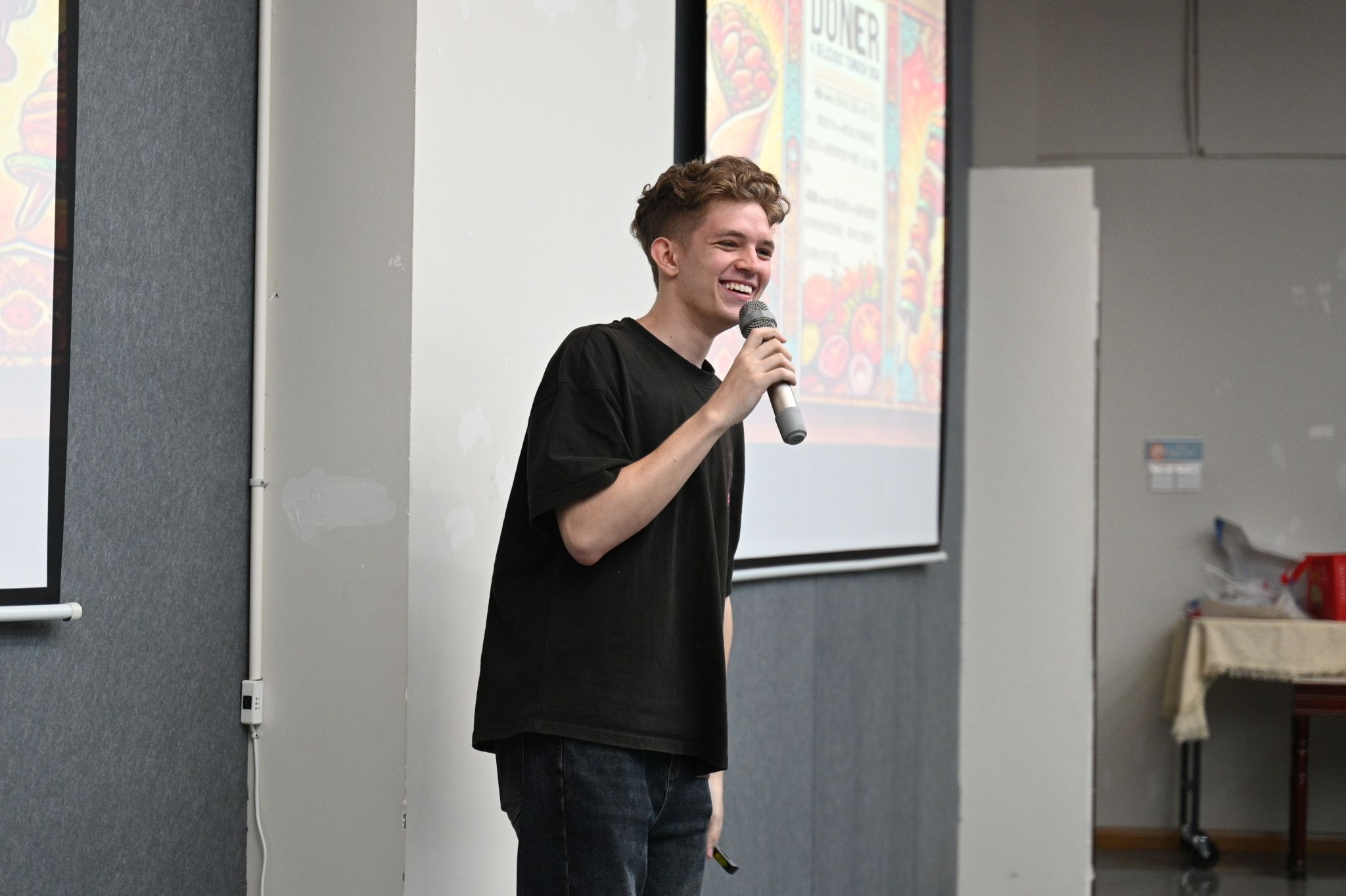 来自德国工程学院、南湖书院与天空书院的的吴金阳、李沁珂两位同学以诙谐幽默的双人演讲形式向大家分享了重庆代表美食——荣昌卤鹅、重庆小面以及重庆火锅,并表示在未来赴德交流时,要将火锅的沸腾、小面的烟火、卤鹅的醇厚带到欧洲,点亮世界美食版图。留学生代表Sarah、Luisa向大家分享了五个德国圣诞美食与德国面包文化;而留学生代表Emil则向大家分享了Döner(土耳其烤肉)在德国柏林和慕尼黑的差异与地域风味;学生代表分享结束后,德国外教老师JULIO CESAR CERVANTES向大家分享了德国经典饮食与中德日常生活中的部分文化差异。