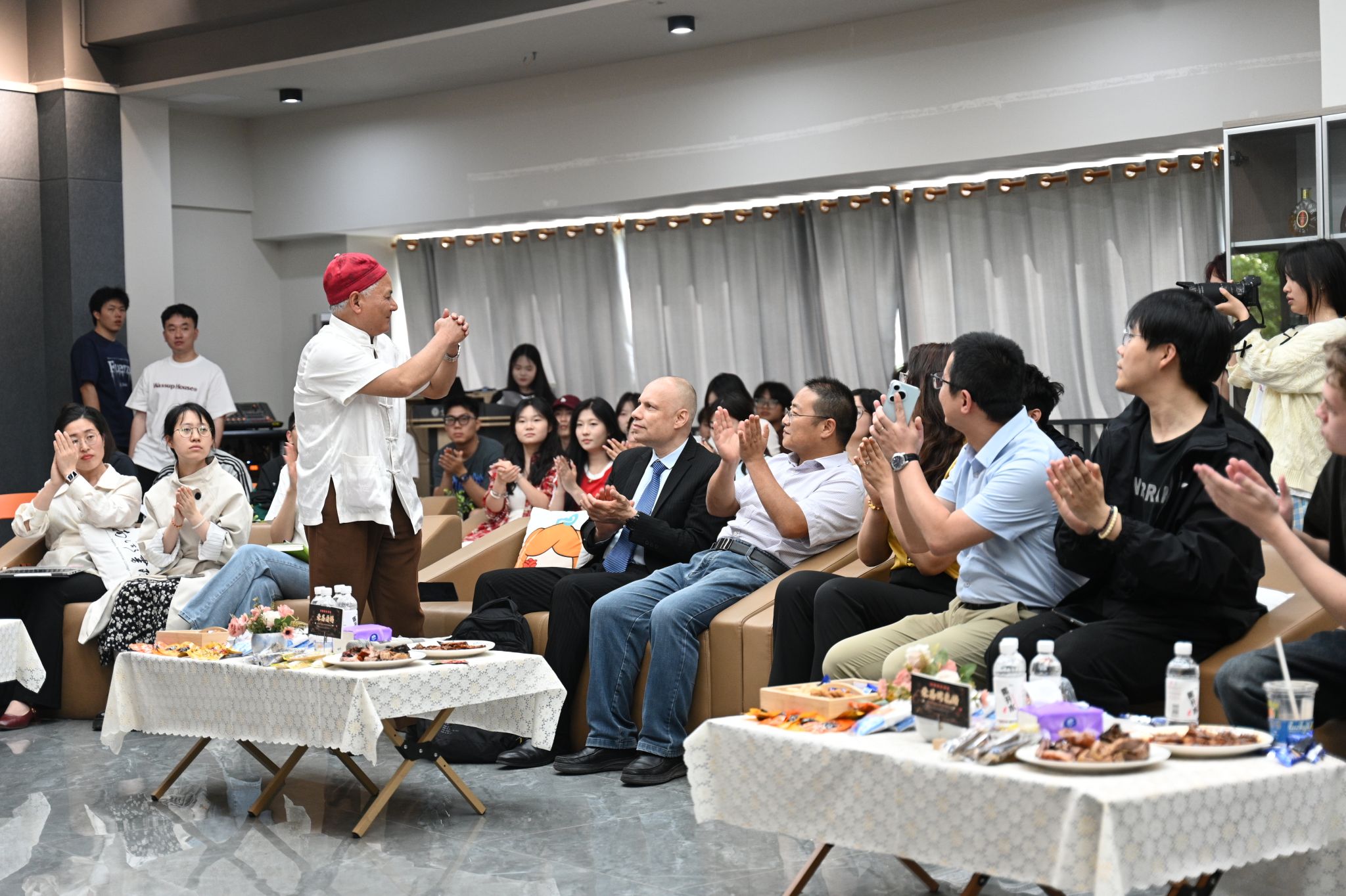 本次活动立足全球化视野,以重庆特色美食为文化载体,通过重庆美食品鉴与人文故事交融,推动中德文明互鉴,为师生打造兼具烟火气与国际范的对话平台,让世界从舌尖读懂重庆的温度与底蕴。伴随着“Speed中国行·重庆站”视频的播放,以美食达人“甲亢哥”视角领略重庆风味,感受“卤鹅哥”对重庆美食的热情推广与营销,瞬间点燃了现场师生对重庆美食文化的热情。