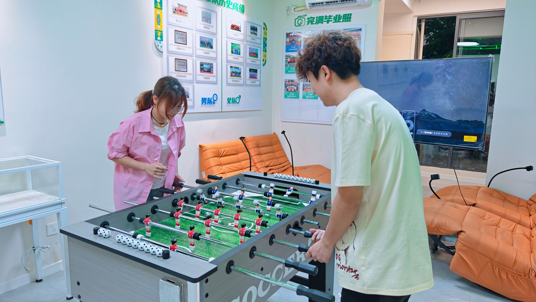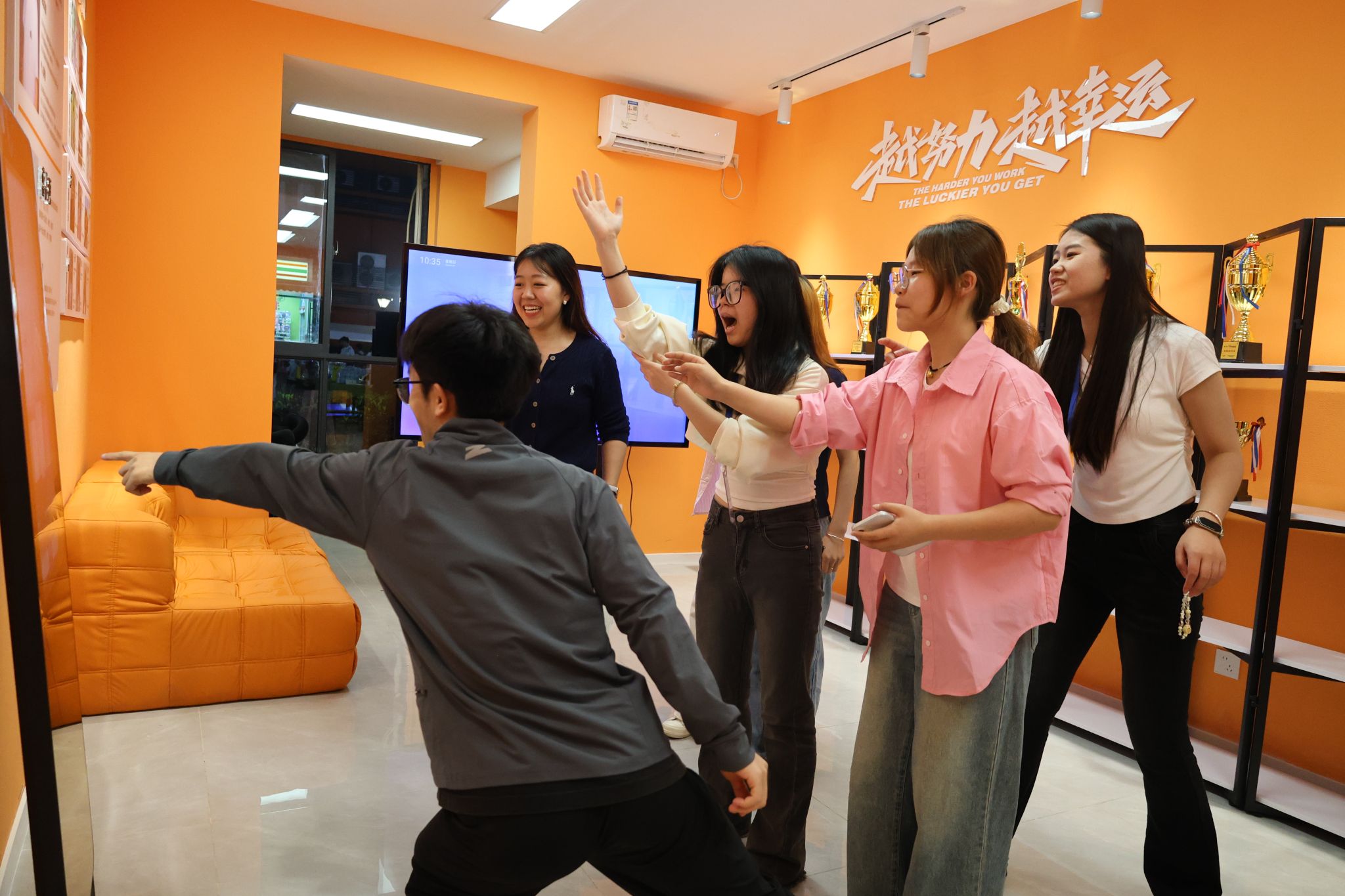 书院空间爆改“异次元”系列盲盒,让960m²被重新定义。以字传情,以印寄愿,让祝福跃然纸上。活动现场师生们通过体验非遗拓印,手作生日祝福,让传统文化与生日仪式多元融合;书院立足情绪释放,打造“释压·VB”、“自洽·乐漾”空间,将体育运动与心理健康结合,引导同学们正视情绪流动、重构快乐感知;师生组团互动,积蓄成长能量。老师、同学们在魔镜体验、体感运动中探索书院社区健康UP氛围;同时,邀请合川区中医院的医师们为师生们进行把脉、推拿,给予其生活松弛感与幸福感,创意打开花果书院4号楼“一站式”学生社区初体验。