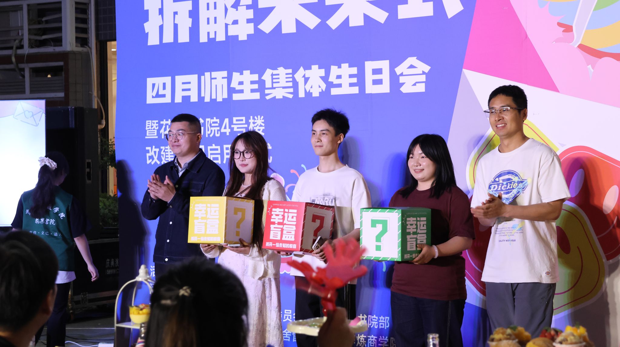 生活是份巨大的盲盒,重在参与,乐在体验。为引导全校师生勇敢探寻自我、重定生活意义,2025年4月23日19:00,在书院部、学生处、重庆移通学院工会委员会的指导下,花果书院联合学生处宿舍管理中心、淬炼商学院立足“盲盒效应+情绪价值”,开展“∞人生拆解未来式”四月师生集体生日会暨花果书院4号楼改建空间启用仪式。本次生日会主要围绕 “你担心的‘普通款’,或许是别人苦寻的隐藏人生”“用0.001m³的未知,对抗100km³的循规蹈矩”“体验未知的‘青春盲盒’,拆封∞成长‘异次元空间’”三个篇章,邀请四月寿星、异科师生、双院老师等在书院社区“开箱”多重青春体验,实现破圈成长,成就无限可能。