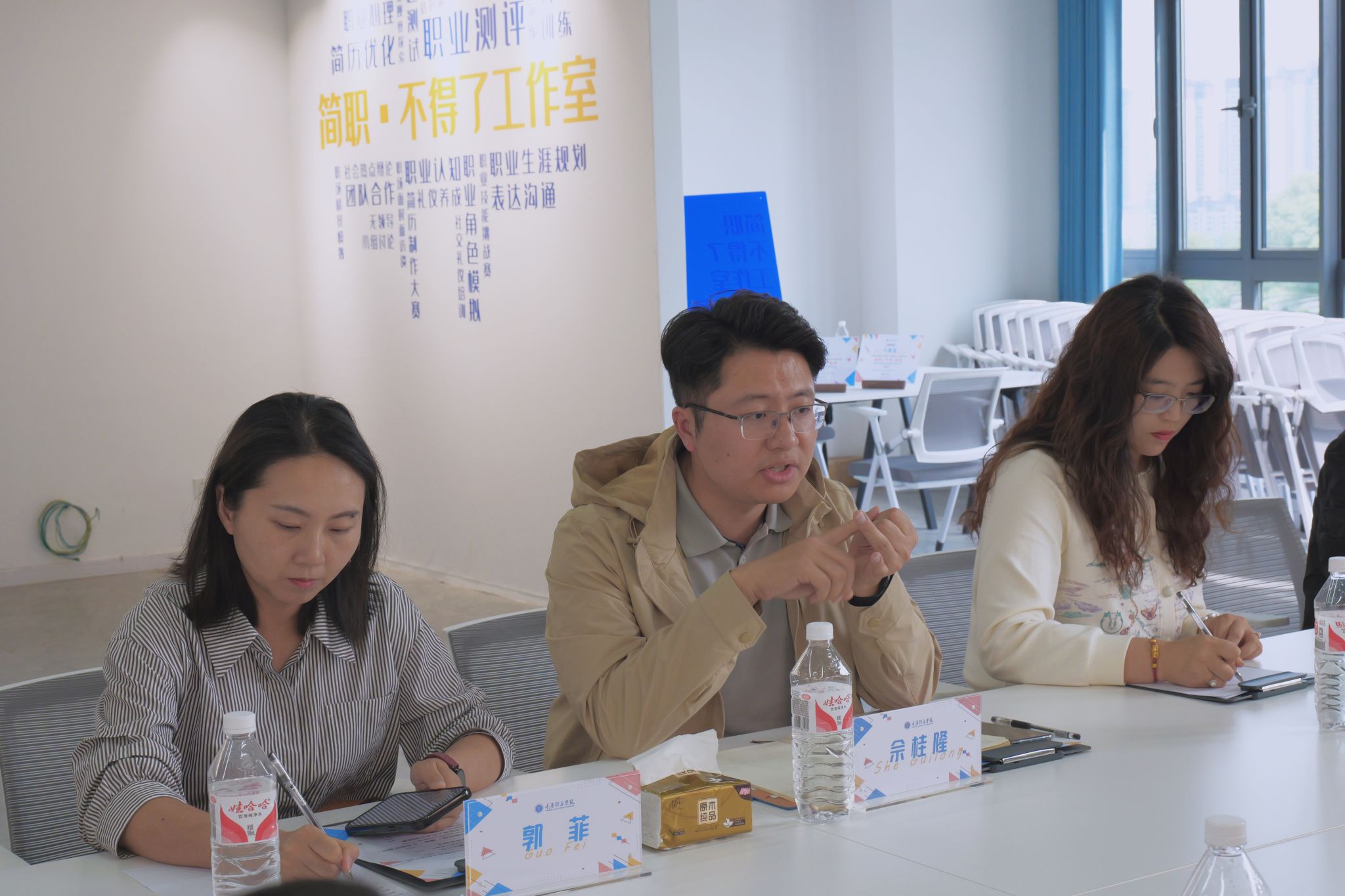 围绕双院结对实施方案,书院部副部长孙佳婧对书院关于工作室做法创新、师生互动、文化展示、数据信息收集等方面提出指导意见,并期望工作室能够更多吸引班团力量、异科导师资源丰富内容;艺术传媒学院学工副院长郭菲对工作室未来拓展指导方向,与学院高度融合,围绕学生成长周期牵头开展相关比赛,以赛促练,锻炼学生实操技能;就业创业指导与服务中心主任佘桂隆就工作室初期目标、中期规划、长远价值进行指导,工作室要行稳致远,除了要对导师成员明确职责,更要通过完善的培养体系,引进企业大咖入校培训指导,让导师、学员、参与者等多角色都有成长收获。各方将一致以工作室为主要阵地,发挥优势特色,开展好学生就业工作,不断总结经验,内训外化,从理念引导、管理服务、条件保障和成果转化等多个方面进行研究,不断优化工作机制,为学子们在就业沃土上植根成长、实现成就贡献力量。