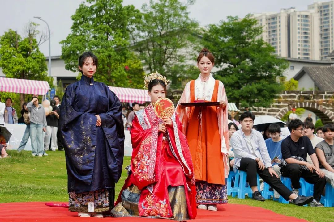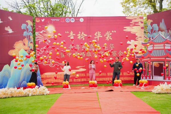 在多元文化交织的时代浪潮下,为引导大学生树立正确、健康的婚恋观念,传承中式婚服文化与传统婚俗文化,2025年4月23日,重庆市婚姻收养登记管理中心、重庆市合川区民政局、共青团重庆移通学院委员会、重庆移通学院外国语学院青年志愿者协会、重庆移通学院爱莲书院联合举办“青衿·华裳”青年婚恋嘉年华暨中式婚服文化品鉴活动,在校园中掀起一股文化与思想交融的热潮。此次活动将千年婚俗雅韵与现代婚恋理念相融合,通过沉浸式文化体验与学术研讨交融,既为同学们铺展传统婚俗的瑰丽长卷,也为当代青年婚恋困境探寻破局之道。