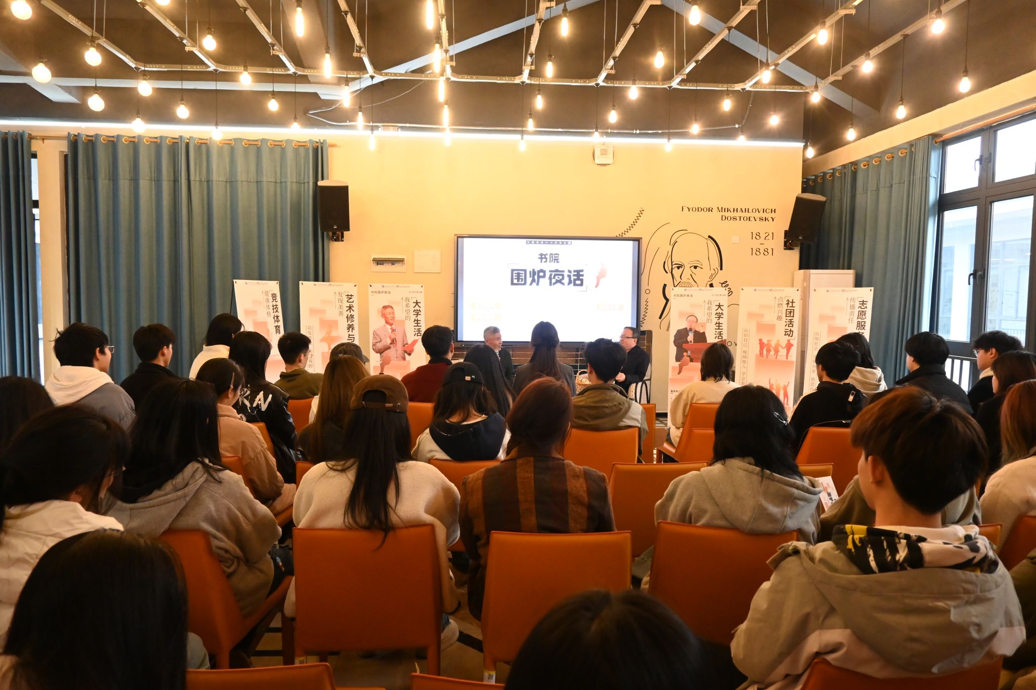 我希望的大学生活—书院围炉夜话合川校区第三十八期 4月1日,由重庆移通学院教务处、书院部主办,鱼城书院承办的书院围炉夜话合川校区第三十八期在天空书院陀思妥耶夫斯基书店举办,本期围炉夜话邀请太原师范学院王林义教授担任主讲嘉宾,重庆移通学院教务处高飞处长担任对话嘉宾。两位师长围绕大学阶段的成长话题,从学业规划、职业探索、兴趣发掘等多个维度进行分享,耐心解答现场师生提出的困惑,在微光斑斓中思维共振、情感共鸣,共同探索大学生活的无限可能。