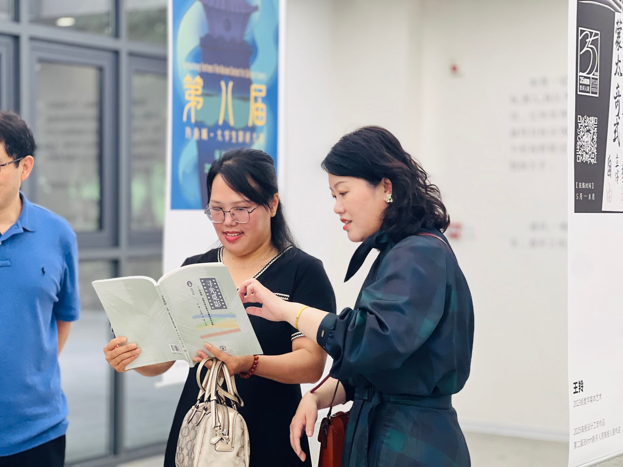本次展览是同学们从工坊常态化的训练到走向展厅布展的一次重要跨越,也是大家从学习者到主理人的华丽蜕变。展览现场,工坊学生化身讲解员,向前来参观的师生详细介绍自己的作品创作思路、设计理念和技术应用,进行面对面的交流和互动,听取意见和建议。