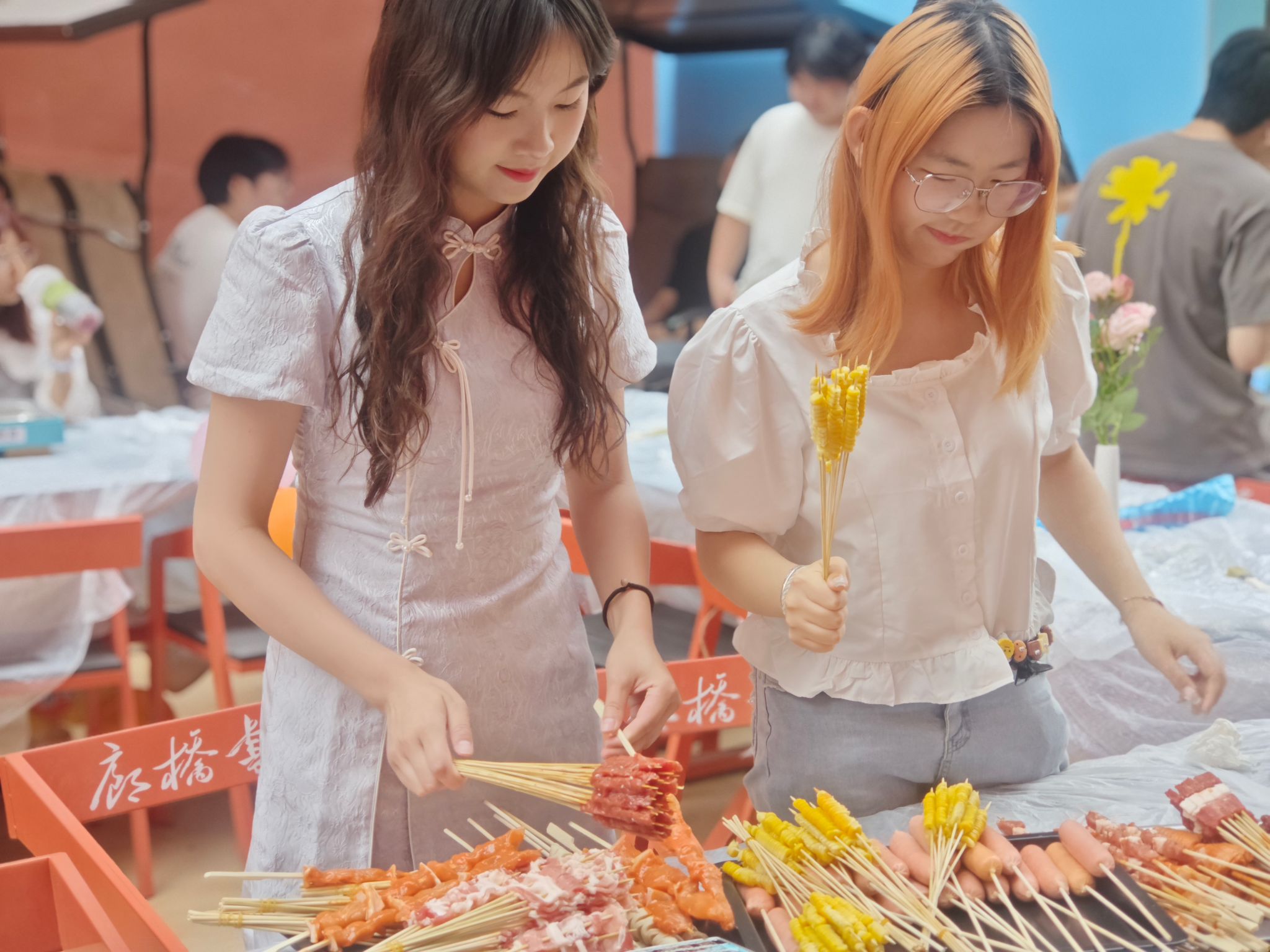 在K歌舞台的另一侧,烧烤区域同样热火朝天。活动实践部成员从下午3点便开始筹备,采买、穿串、点炭、烤制一丝不苟,只为让每位到场师生都能在“人间烟火气”中体会书院的人文关怀。伴随烧烤香气与笑声交织,大家围坐一圈,畅谈理想,回顾往昔,不少人拿出手机记录下这份难得的校园温情。