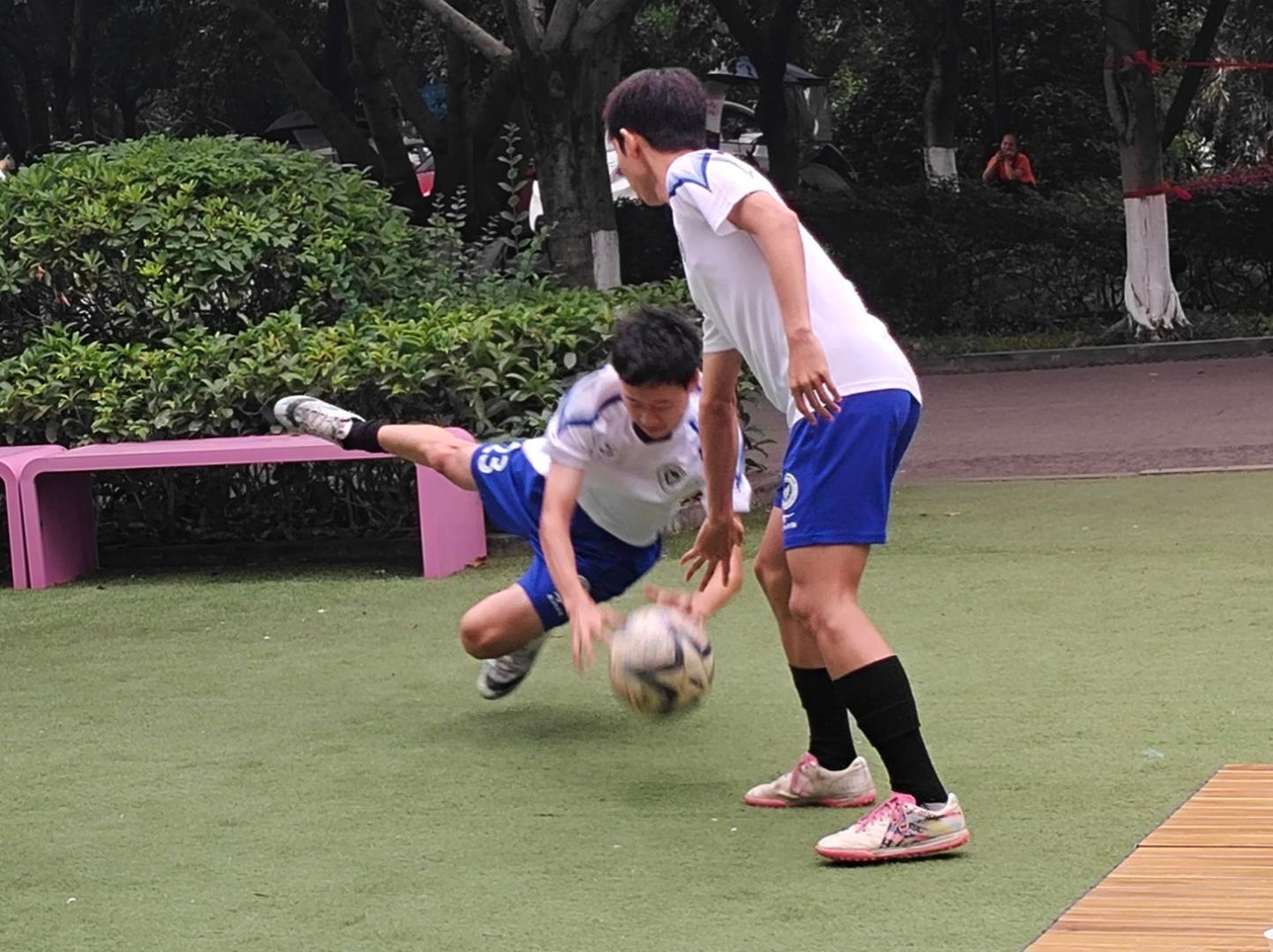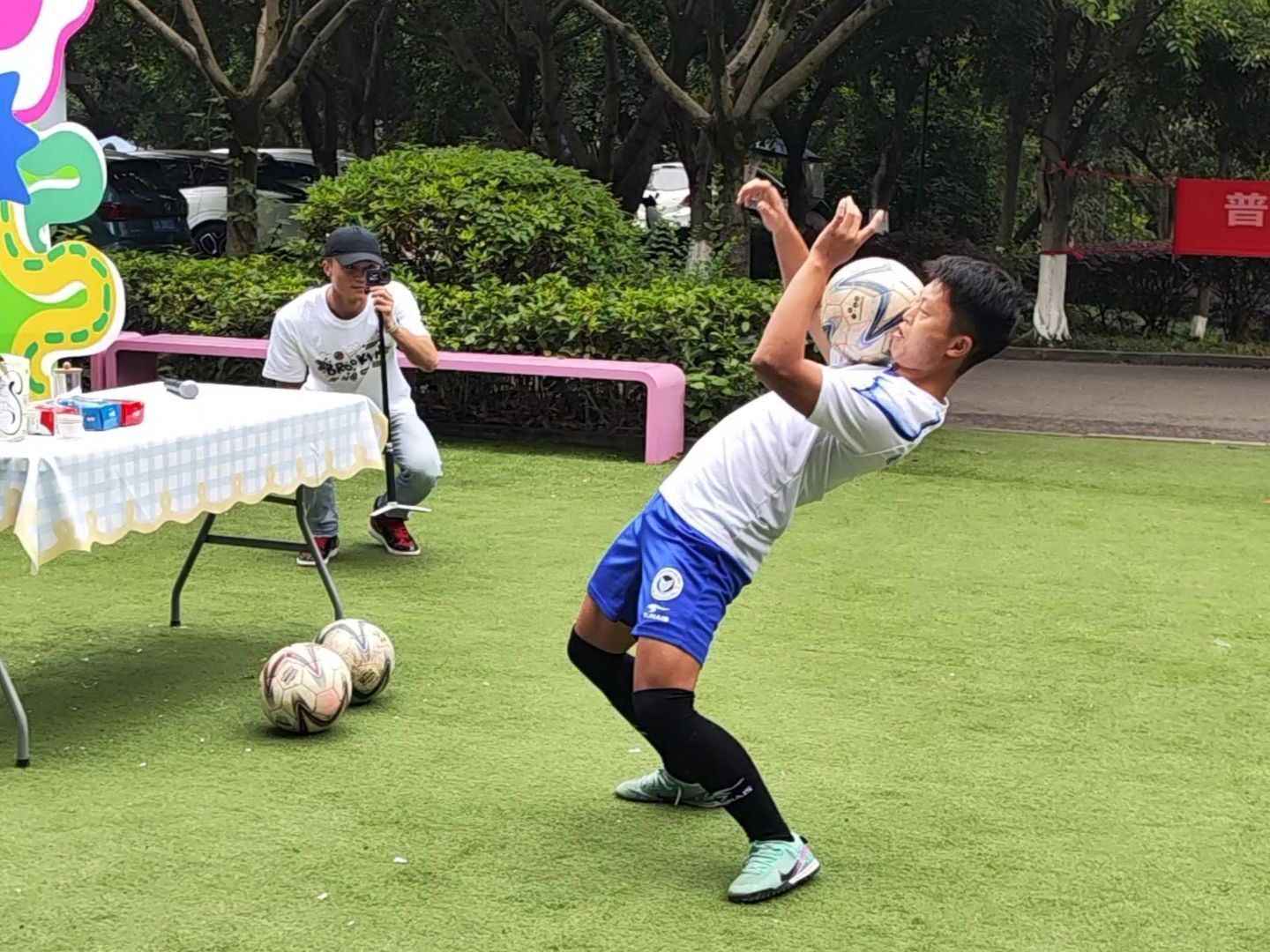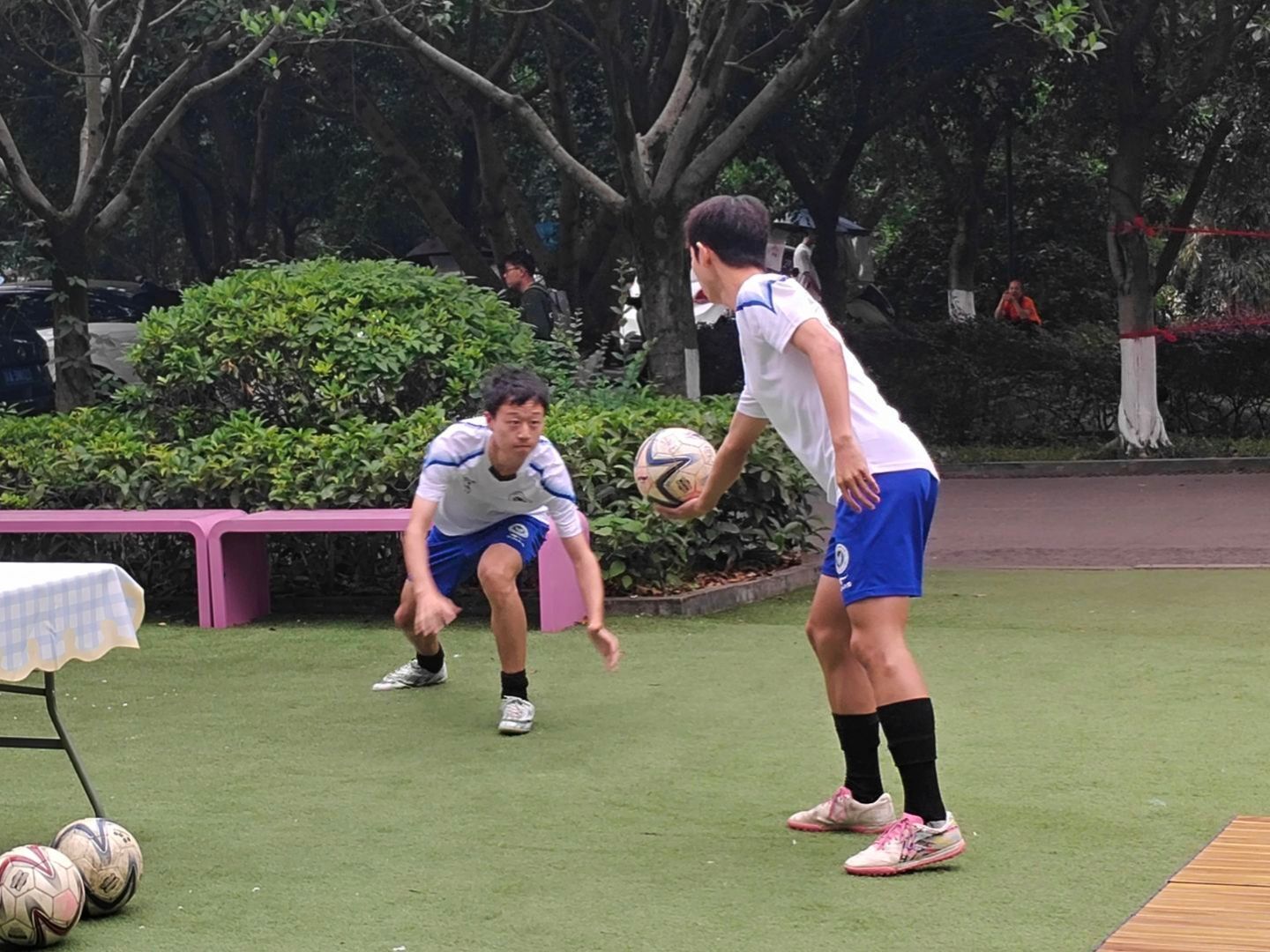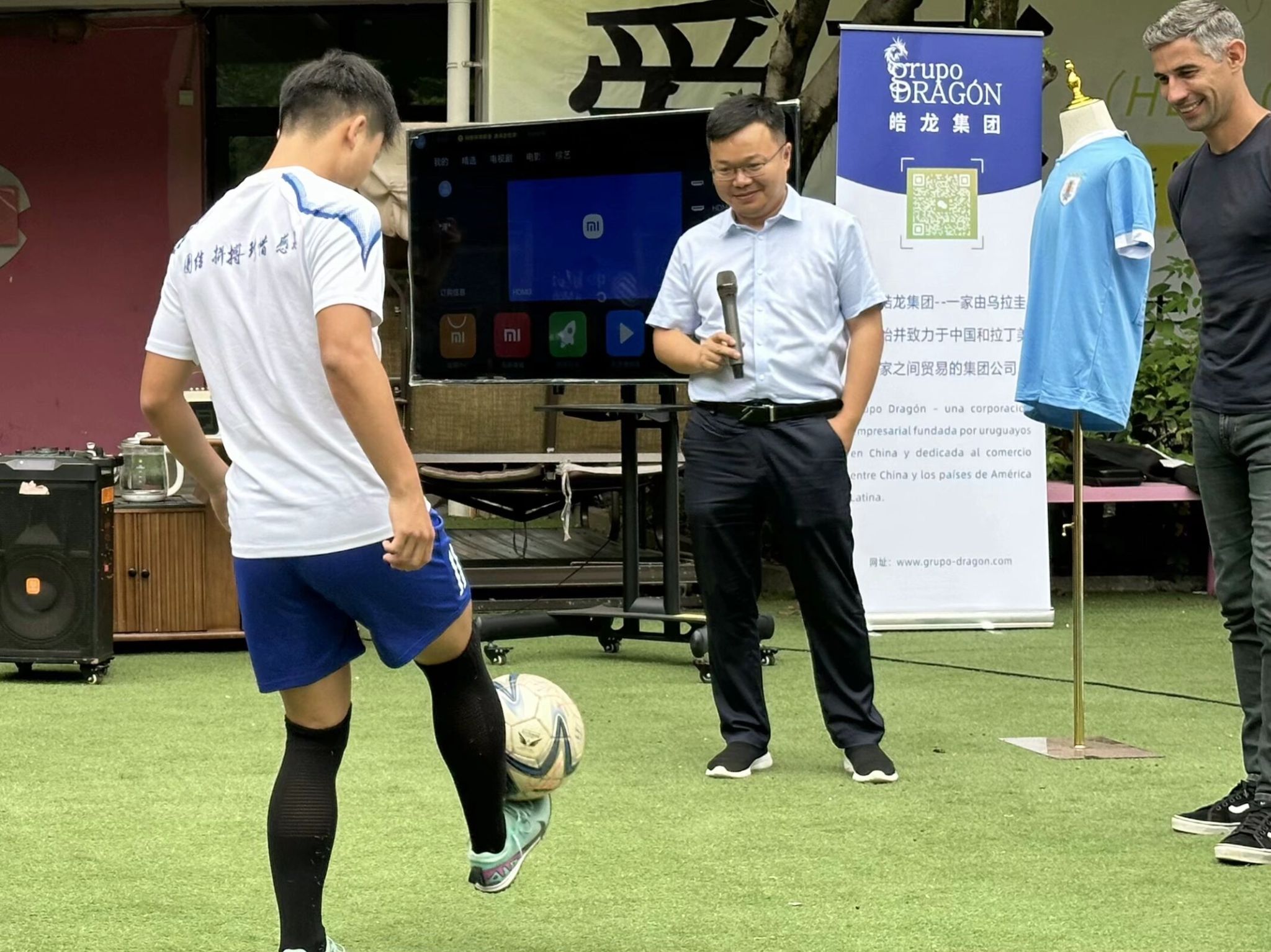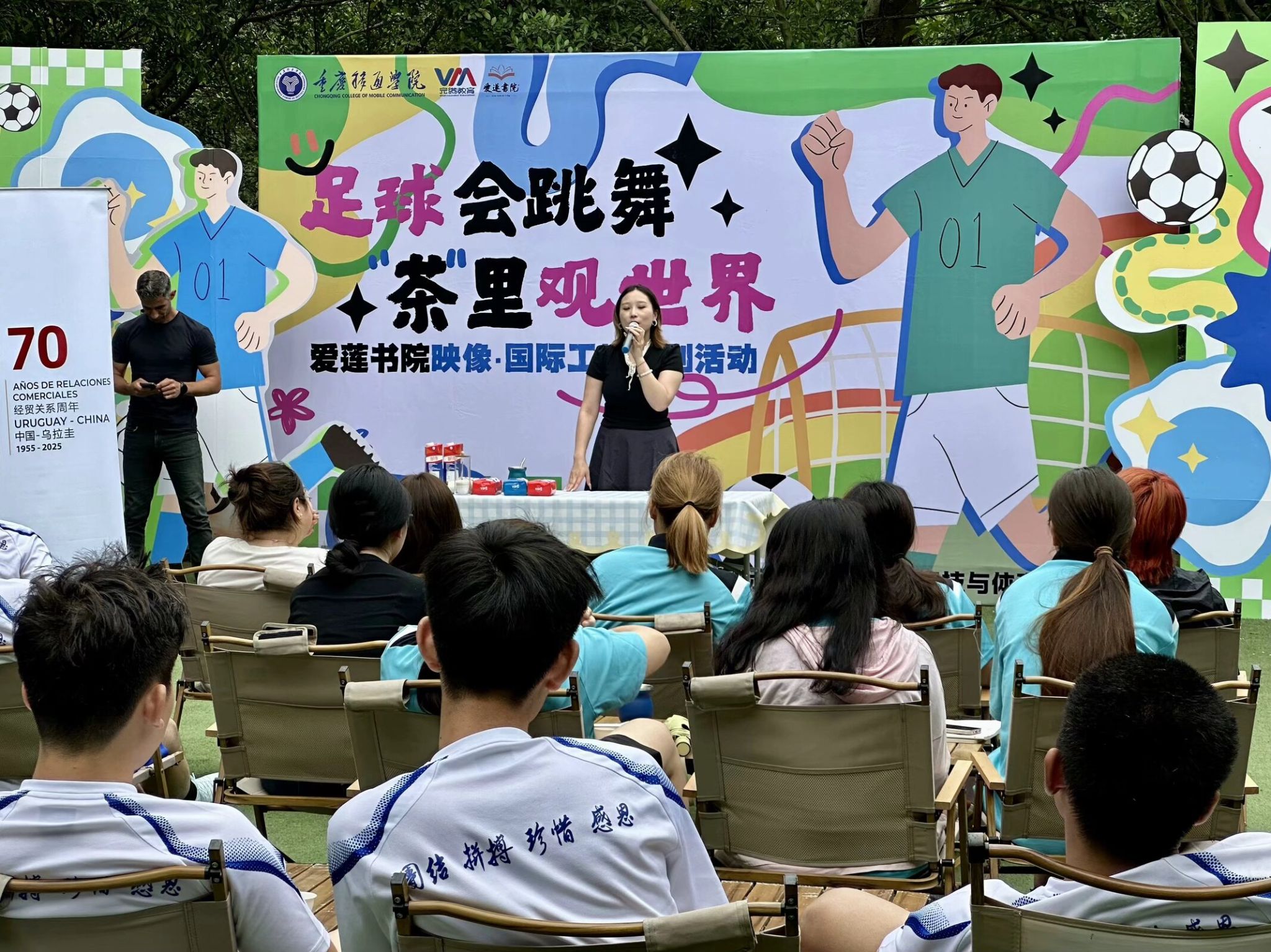 五月,夏风微醺,运动的活力与文化的韵味在此刻交织。5月16日下午15:00,爱莲书院联动国际交流与合作处、竞技体育中心,在爱莲书院小广场举办了一场别开生面的“足球会跳舞,茶里观世界”特别活动。活动特邀乌拉圭足球教练Hernan现场教学,以足球为纽带,以茶文化为媒介,带领师生沉浸式体验南美体育激情与人文风情,在绿茵奔跑与茶香氤氲中,探寻体育之美,感受文化之韵,开启一场跨越国界的“足尖与舌尖”的对话。 (图2)