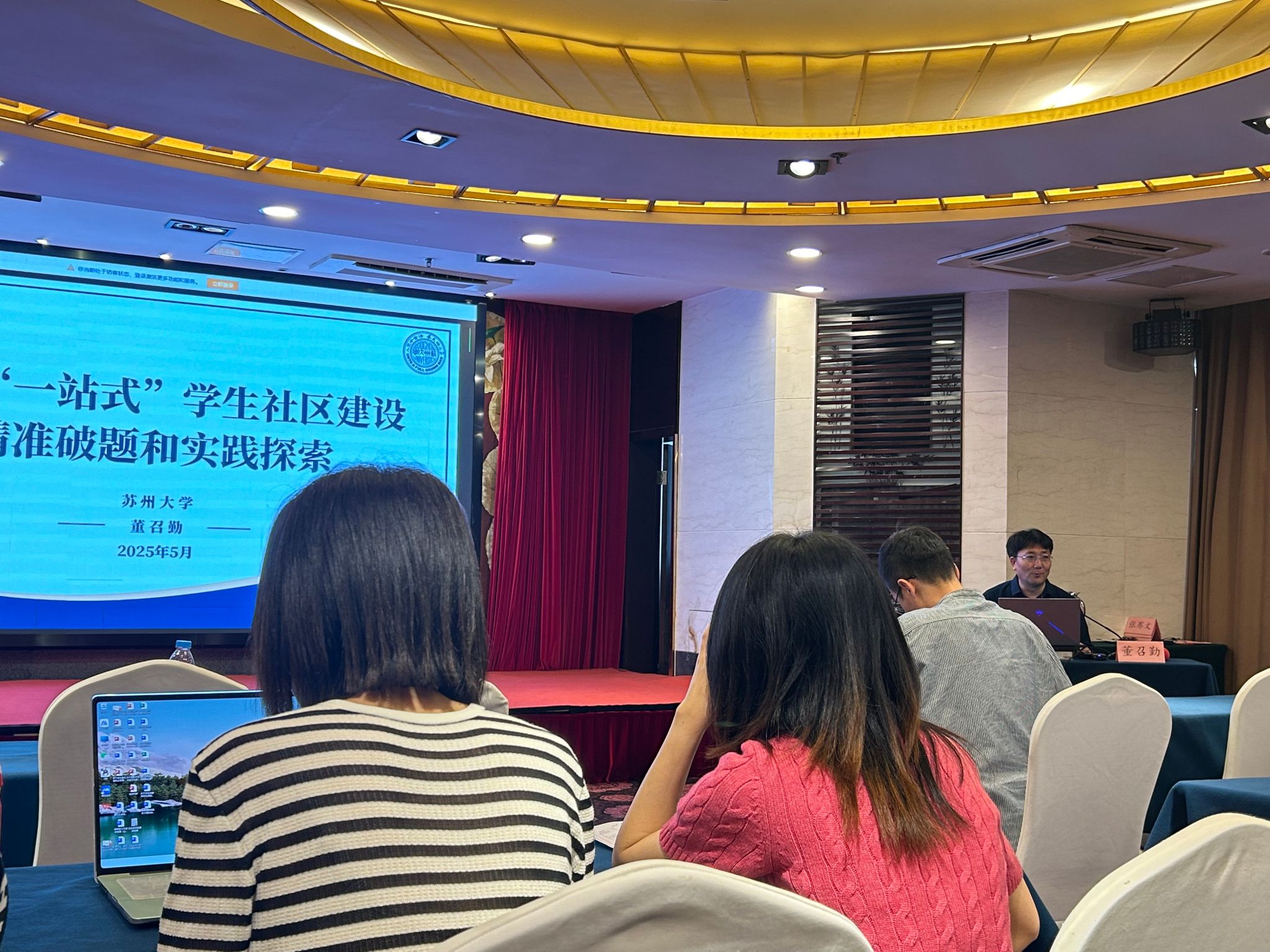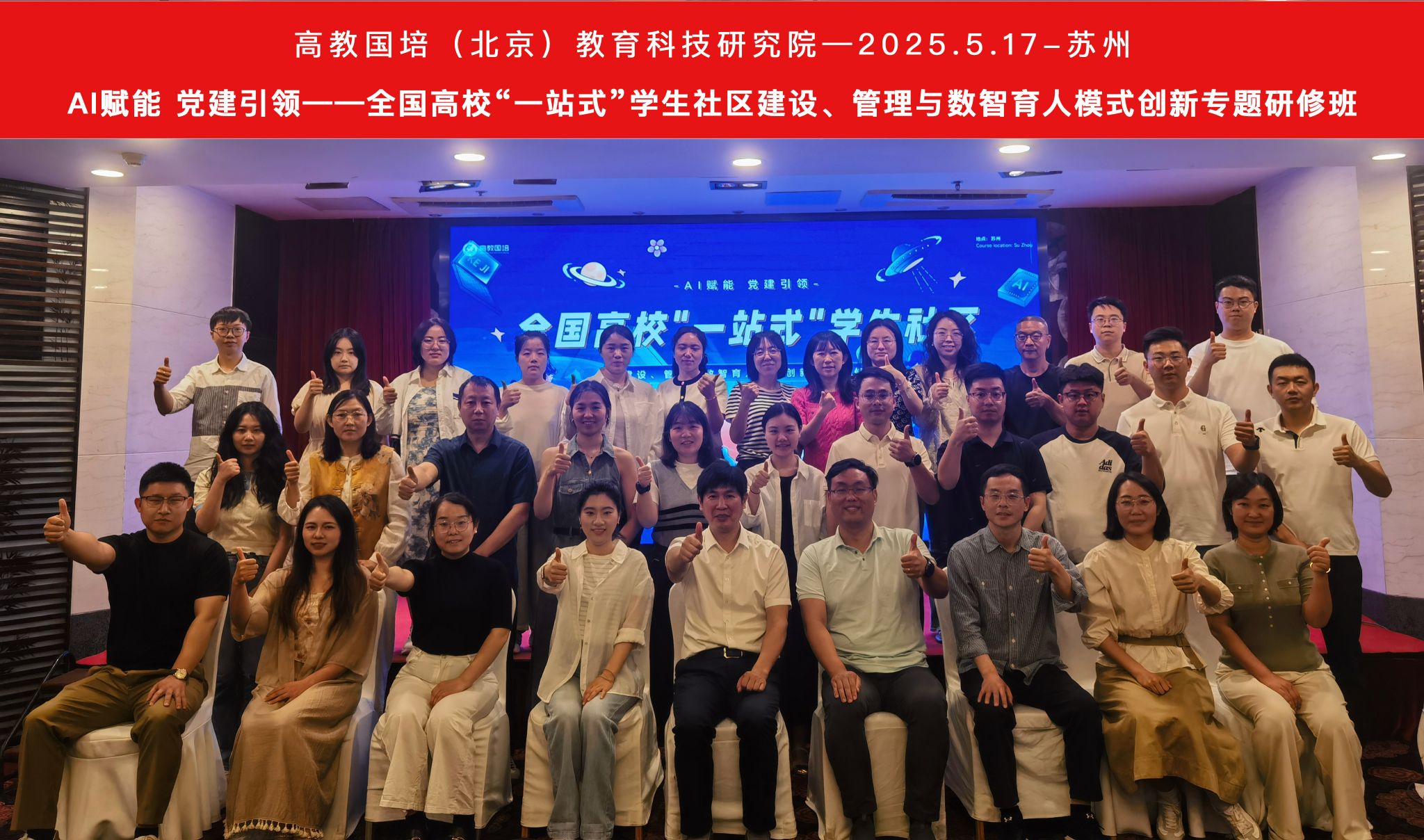 5月17日至18日,“AI赋能 党建引领——全国高校‘一站式’学生社区建设、管理与数智育人模式创新专题研修班”在苏州举行。重庆移通学院花果书院吴静、汇江书院彭聪、学生处宿舍管理中心牟建桥三位老师参会,同时,吴静老师受邀进行主题分享。本次研修班,共有江苏大学陈权、苏州大学董召勤、长安大学张骞文等专家及全国近30所高校80余名同仁,以线上或线下方式参与其中,共同围绕“一站式”学生社区建设与AI技术应用、党建引领、数字赋能等内容融合发展进行了深度研讨。