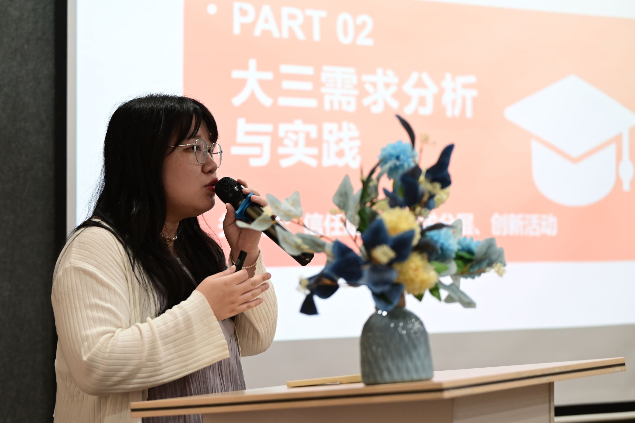 通信与信息工程学院、南湖书院异科导师代表杨梦雅老师以《异路同程:从需求出发的跨学科成长陪伴》为主题,从“破冰”“共行”“留痕”三阶段分享实践经验。通过“成长档案”精准把握学生需求,利用书院空间开展商科活动打破学科壁垒,助力学生获奖;通过简历辅导、减压分享会、师生共膳等方式,缓解学生就业焦虑;同时以创意祝福传递关怀。杨老师认为:异科导师的价值在于“用跨专业视角拓宽边界,用陪伴照亮成长道路”从需求出发,以真诚落笔,让每一步陪伴皆有回响。