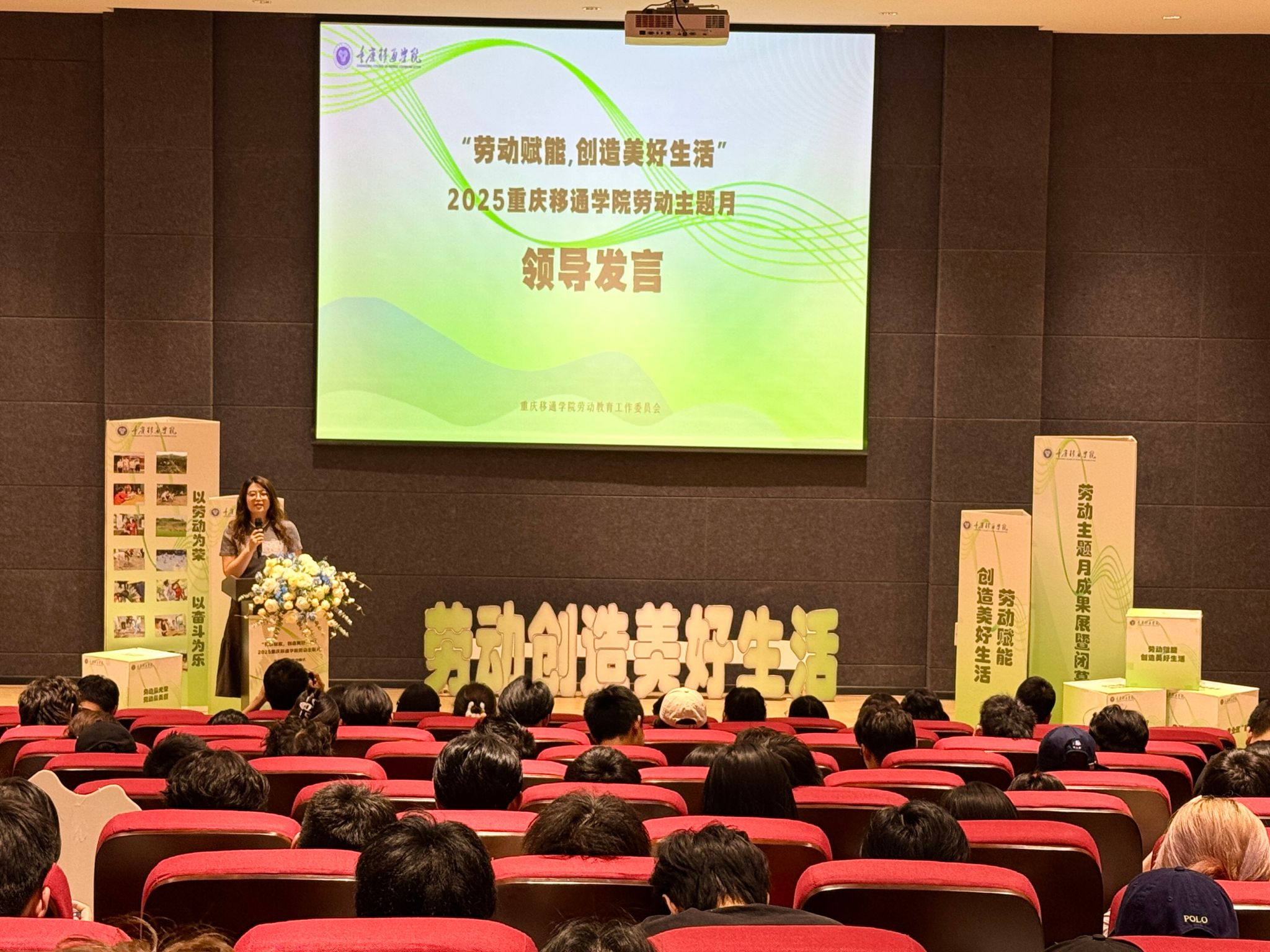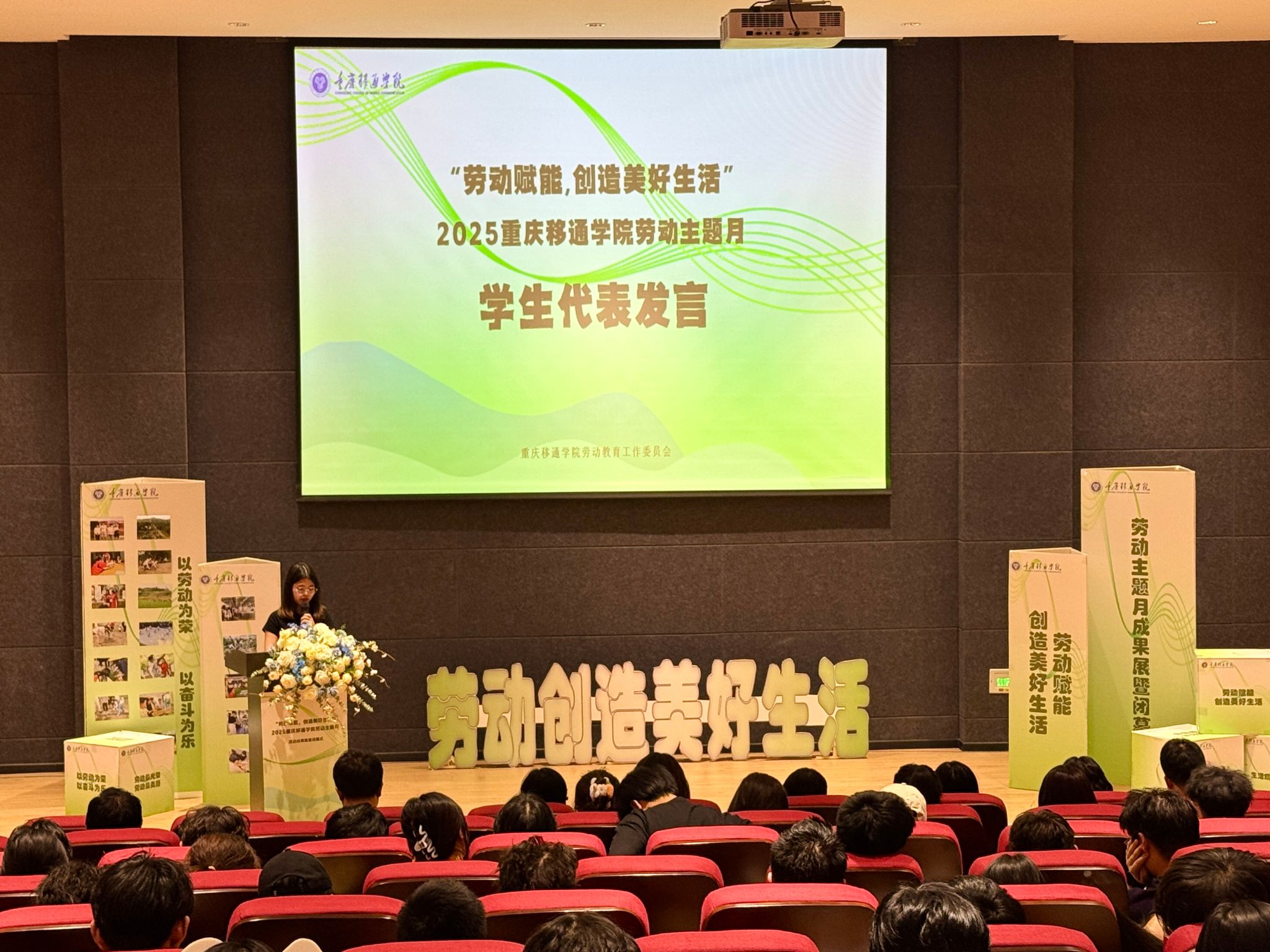 5月28日,“劳动赋能,创造美好生活”2025重庆移通学院劳动主题月活动成果展暨闭幕式在学校六度空间105℃学术报告厅隆重举行。本次活动以总结成果、表彰先进、展示特色为主线,通过丰富多样的形式集中呈现全校师生在劳动教育主题月中的实践收获,为为期一个月的劳动教育活动画上圆满句号,也开启了移通师生在劳动教育道路上不断探索,奋勇前行的新征程。