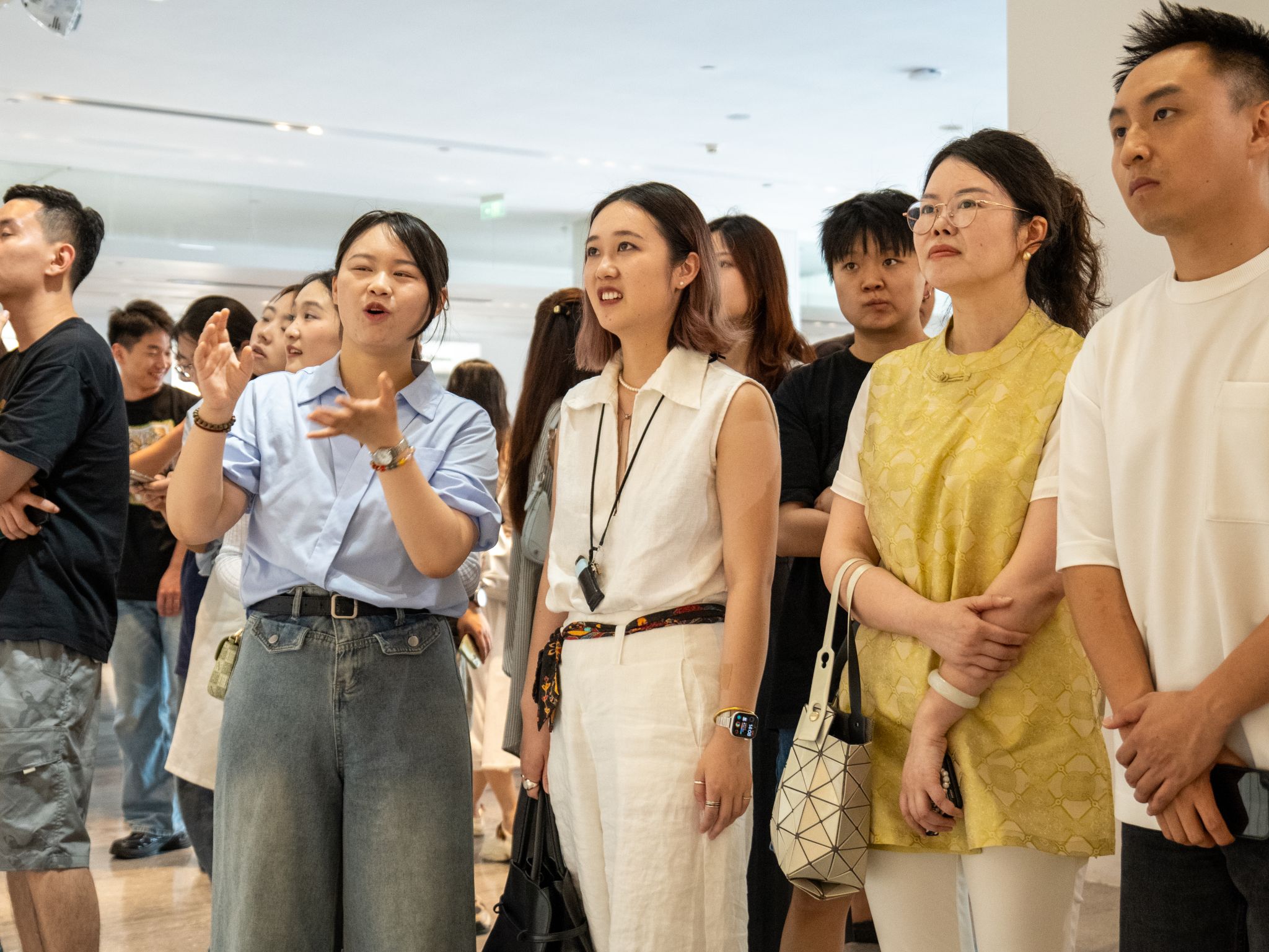 此次名誉院长精品课以美术馆为课堂、以展览为教材,是形式上的重要创新。郭昕教授在行走观展中实时引导师生解读作品,将抽象美学原理转化为眼前可触可感的视觉语言。师生们在具象与观念的交织中驻足沉思,在色彩与结构的碰撞里捕捉灵感。郭昕强调:“美育的生命力在于融入真实场域。让师生直面艺术创作前沿的脉动,比任何单向传授都更能唤醒审美自觉。”