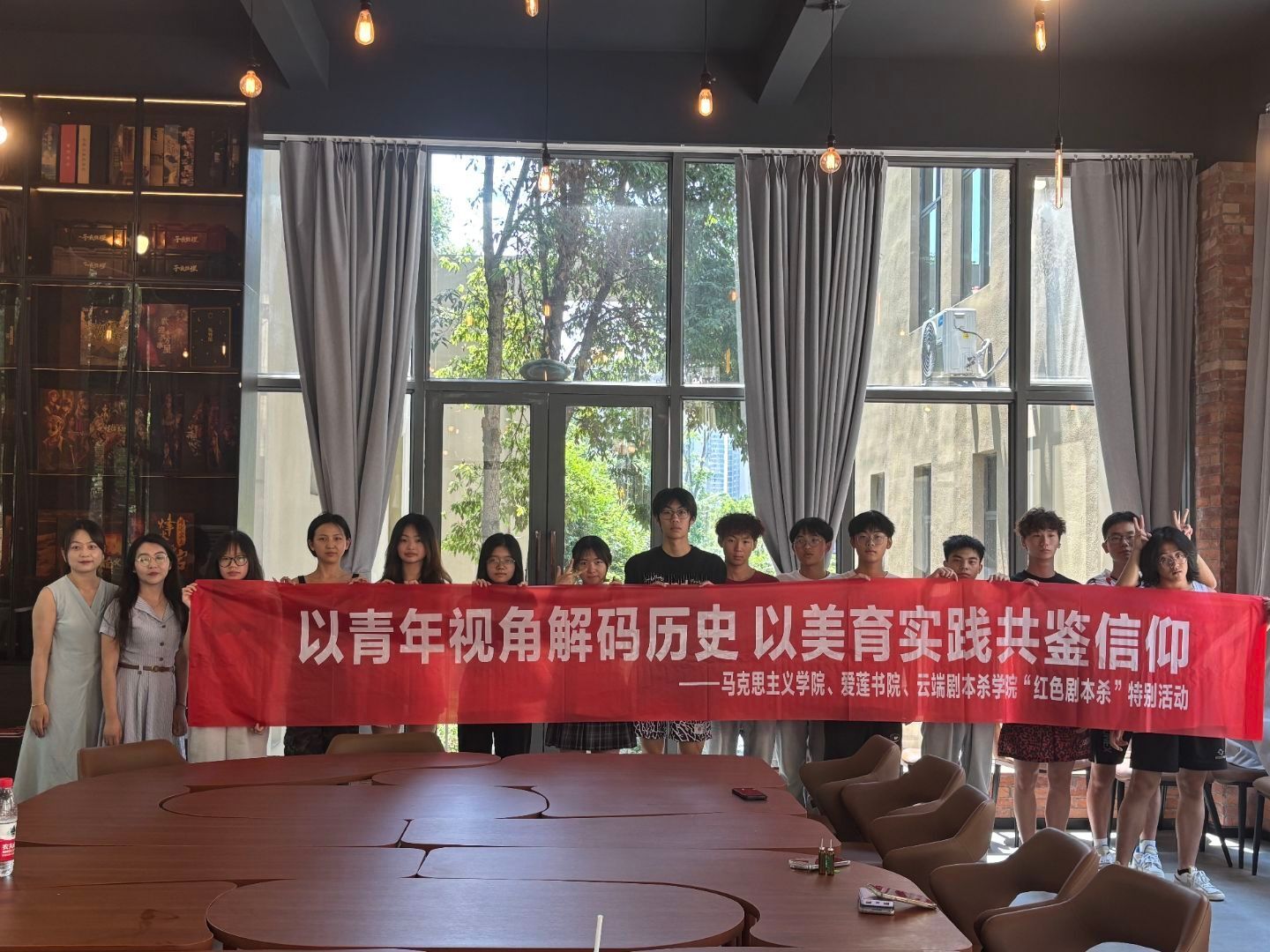 为赓续红色血脉、厚植家国情怀,探索新时代思政教育新路径,2025年6月11日下午14:00,爱莲书院在云端剧本杀学院举办了一场独具匠心的青年博学课堂“红色剧本杀”特别活动。活动以沉浸式体验为载体,将党史教育与美育实践有机结合,让同学们在角色扮演中感悟信仰力量,在互动交流中厚植家国情怀。这场跨越时空的对话,既是对革命先辈的深情致敬,也是对新时代青年的精神洗礼。