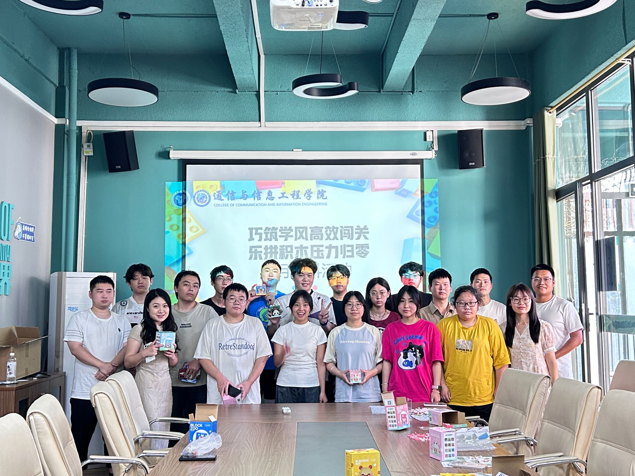 通信与信息工程学院异科导师韩舒臣、江旭东在花果书院组织学生开展“巧筑学风高效闯关,乐拼积木压力归零”主题活动。活动中,师生共同参与拼积木环节,在协作拼接创意造型的过程中,充分发挥想象力,现场气氛热烈融洽,有效缓解了期末复习的紧张压力。此次活动创新融合学习方法指导、诚信教育与减压活动,既为学生提供了科学备考策略和诚信考试准则,又通过趣味拼搭帮助学生释放考前压力。