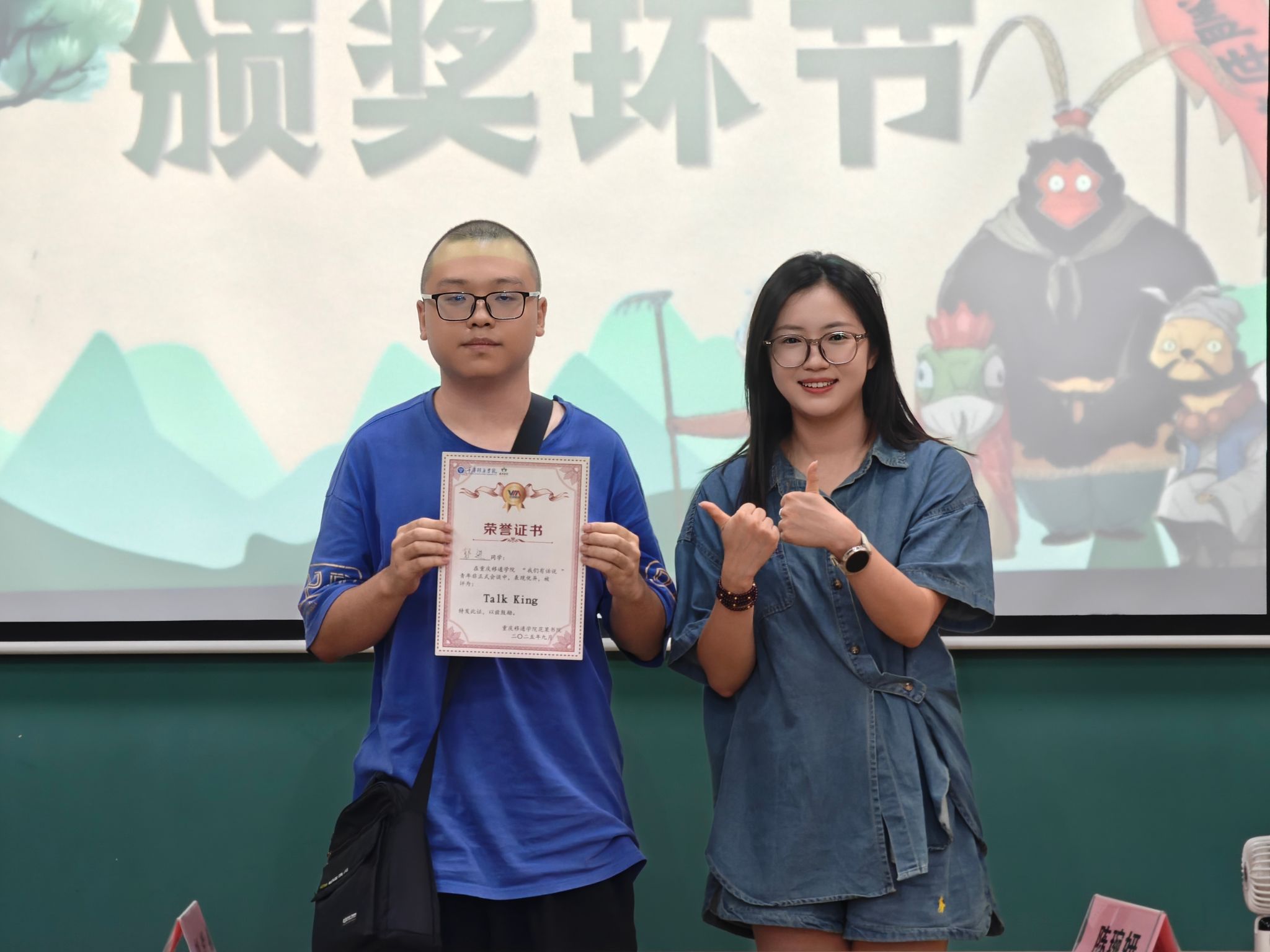 非常荣幸能荣获本次活动的“Talk King”奖项。最初报名参与活动时,我以为会是一场轻松的观影体验,未曾想本次活动竟是朋辈互动的交流讨论,更未曾预料我会收获“独一份”的荣誉,所以我希望同学们都有勇气翻越人生中的“浪浪山”,勇敢挑战所谓的“不可能”,在不断前行中收获更完满的青春,也共同奔赴一个更加明亮、值得期待的未来。