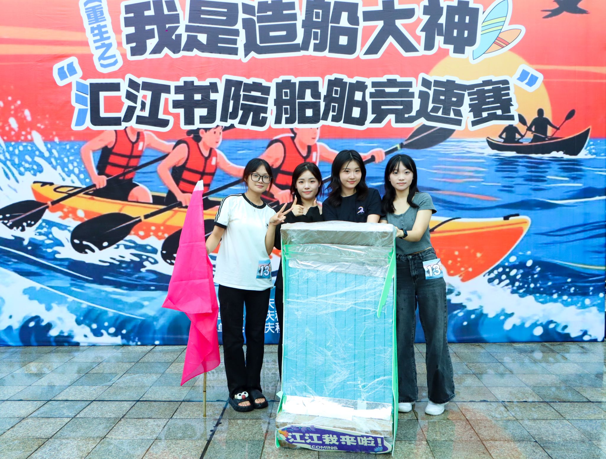 两小时后,各组成品船舶形态各异,或科幻、或复古、或实用,每一艘都凝聚着创意与认真的态度。正如来自廊桥书院、通信与信息工程学院的李飞扬所说:“从‘废品’到能下水的船,我们学会了把想法变为现实。”