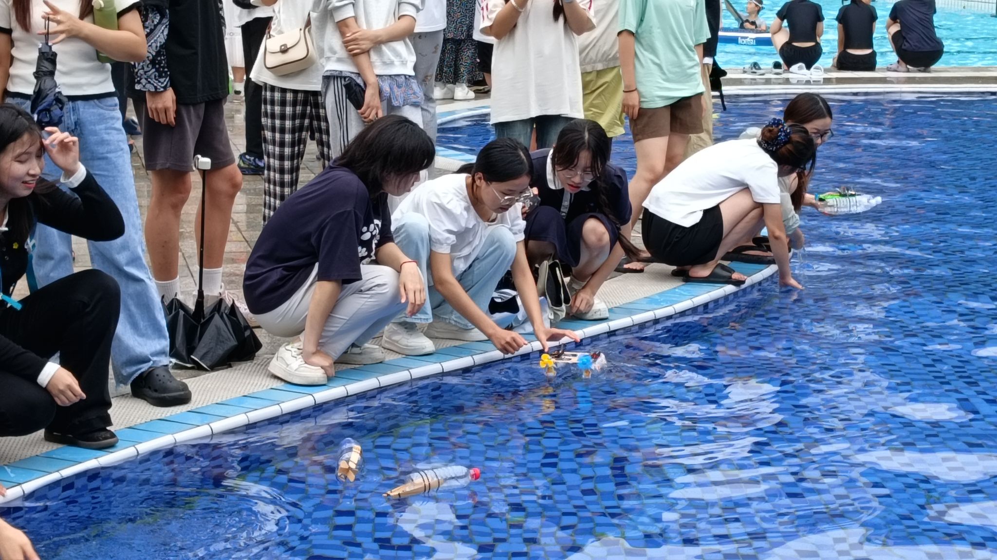 秋意渐浓,清风拂面,九月的校园里创意飞扬、热情涌动。响应国家“碳中和”号召,结合我校“四位一体双院制”特色育人模式,汇江书院于12日下午在校游泳池举行第七届“重生之我是造船大神”船舶竞速赛。本次活动由汇江书院与营地教育中心联合承办,通过“废品造船+环保知识竞答+水上竞速”三重玩法,全面点燃同学们的动手热情、创新意识和团队精神,带来一场环保、创意、竞技与趣味并存的青春派对!