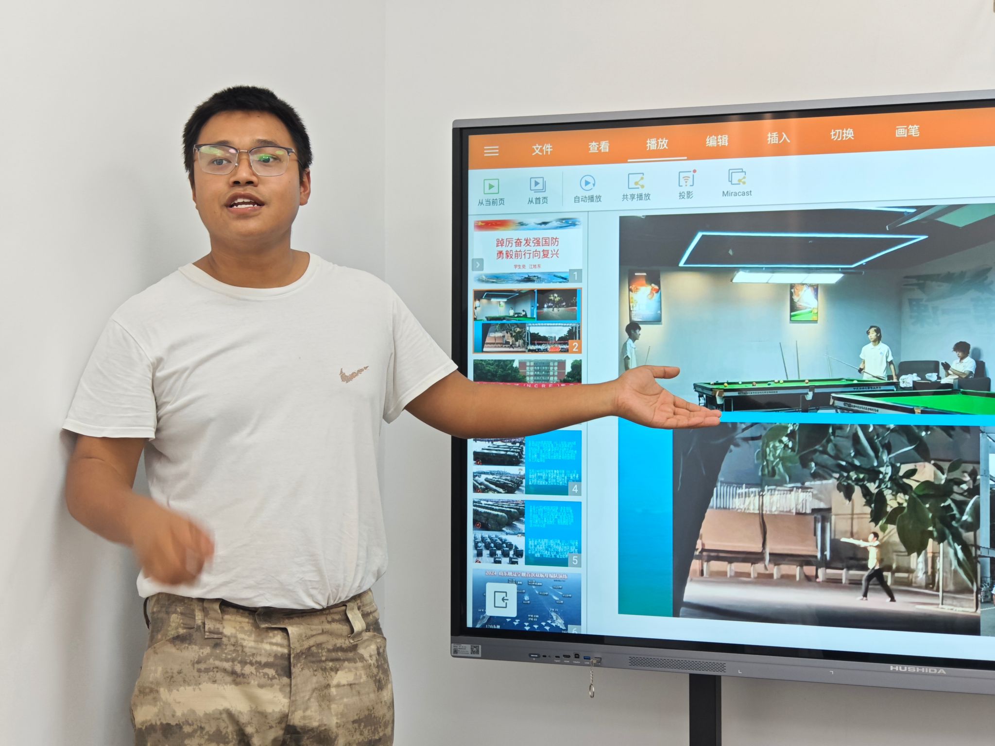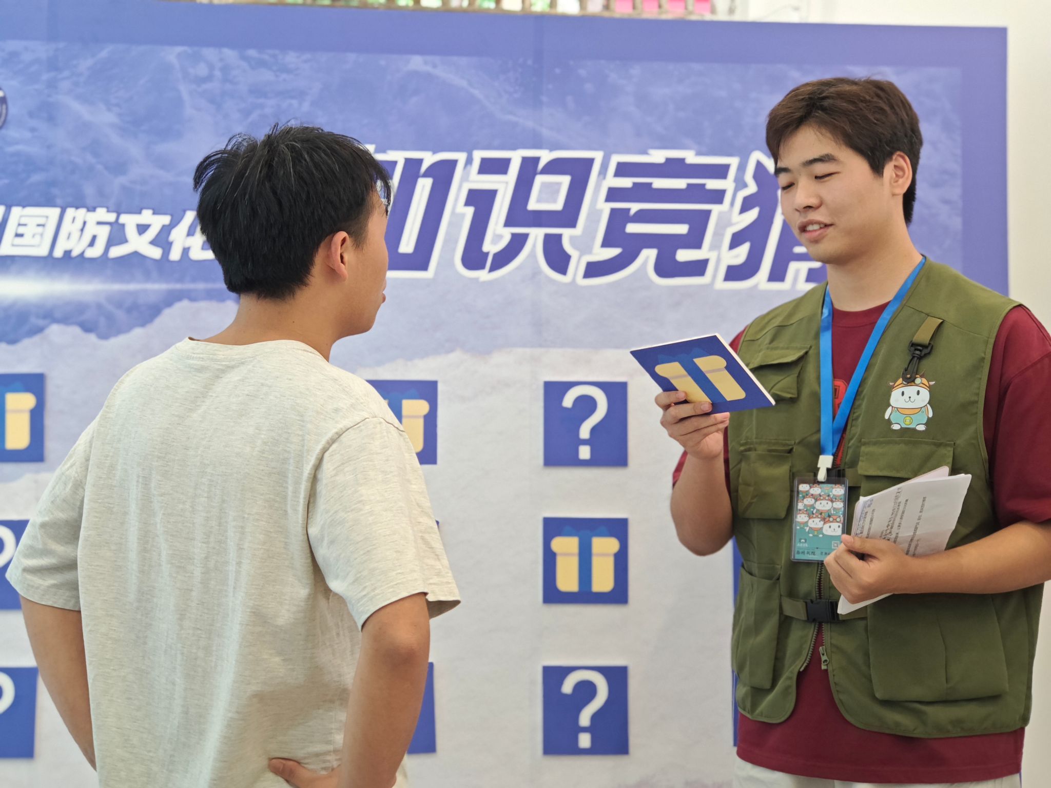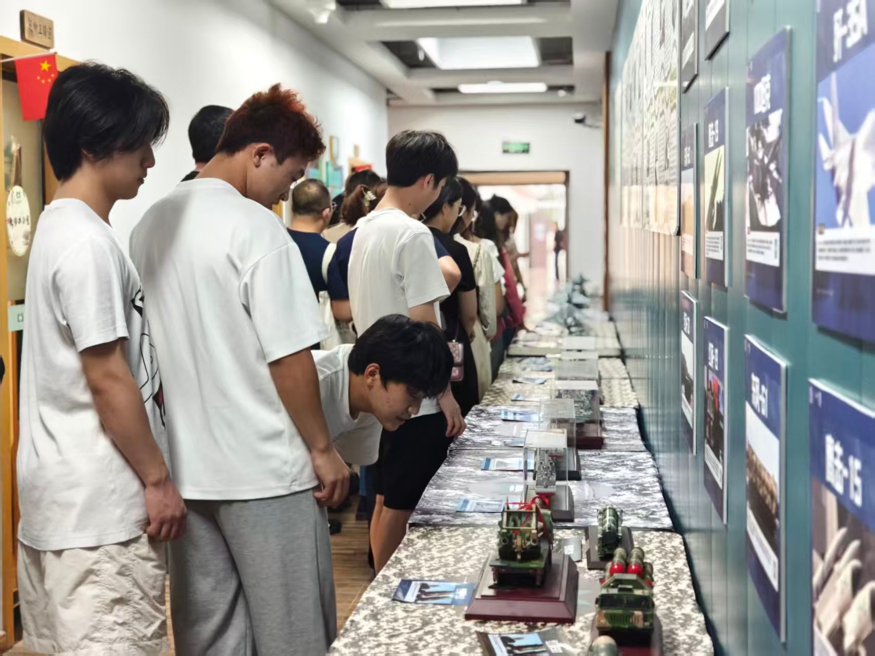“历史回溯墙”是民族奋斗史的厚重沉淀。一幅幅珍贵的历史图片、一段段文字解说,将师生带回那个浴血抗战的年代,历史展不仅是回顾过去,也引导学生思考:在新时代,如何在国家发展中发挥青年一代的力量?国家著名核物理学家于敏说:“人的名字,早晚是要没有的,能把微薄的力量融进祖国的强盛之中,人生足矣。”这份精神激励当代青年,以小我融入大我,在时代征程中勇担使命。活动的最后,我们准备了问题盲选竞猜活动与模型胸针礼品,在问题中夯实国防知识,从答案中汲取奋进力量。
