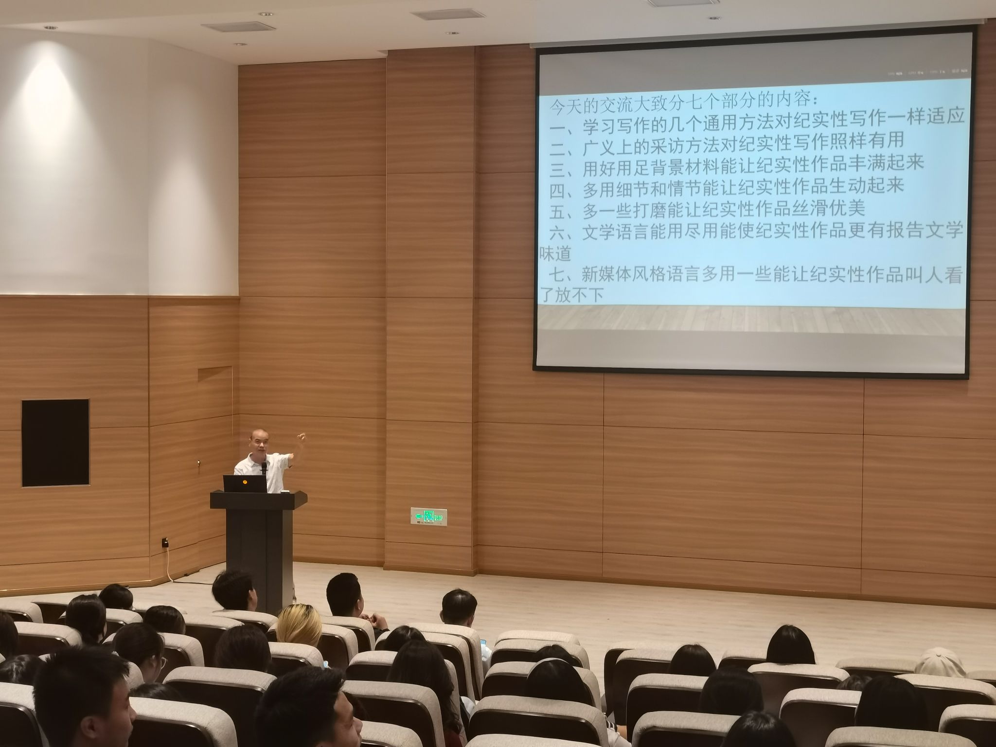 9月24日晚,由重庆移通学院新闻采写学院、廊桥书院、党外知识分子联谊会联合主办”新采大视野”系列讲座在六度空间创梦空间精彩开讲。此次讲座特邀拥有29年媒体从业经验的杭州日报报业集团资深编辑、首席记者,浙江省党委宣传部审读审看中心专家库入库专家虞洪波做客重庆移通学院。以“纪实性写作 功夫‘在诗外’——新闻采写方法在纪实性写作的灵活运用”为主题,深入剖析纪实性写作的核心技巧,给现场师生带来了丰富的案例和实用的写作方法。