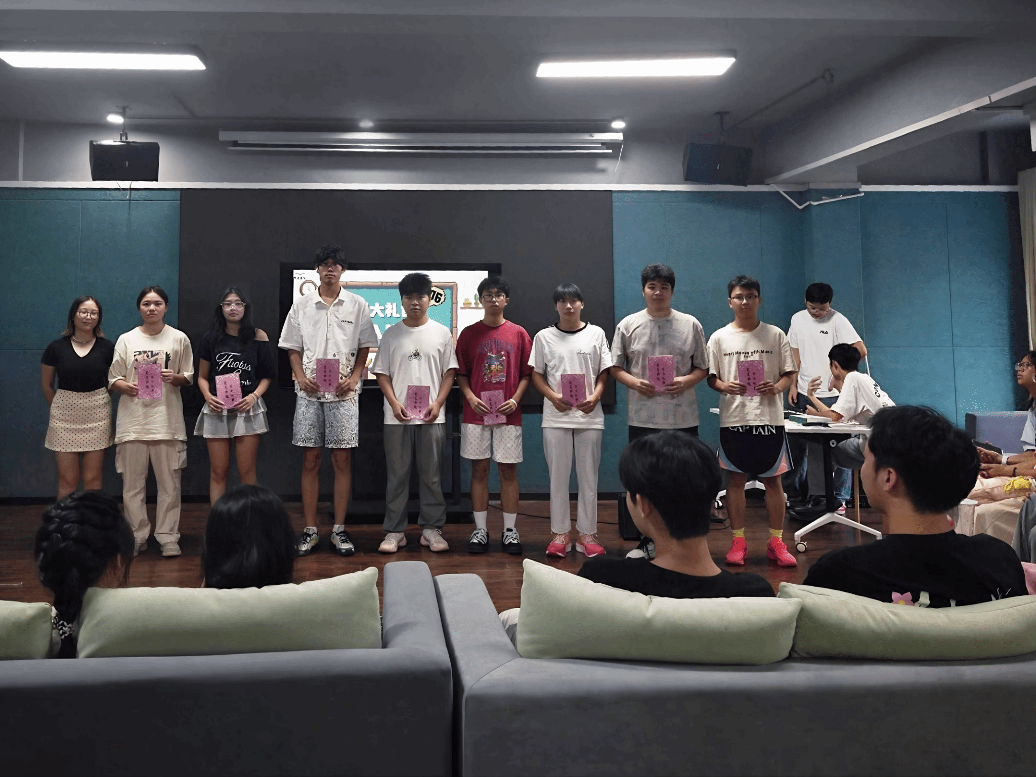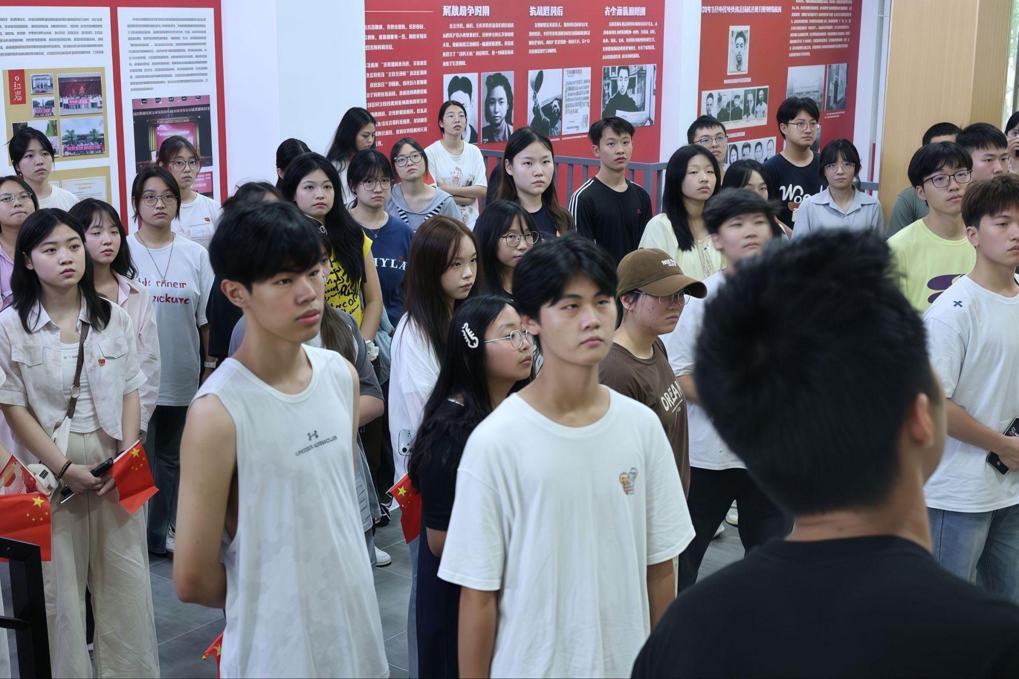 9月3日,在中国人民抗日战争暨世界反法西斯战争胜利80周年纪念日当天,北山书院联合外国语学院、通信与信息工程学院、智能工程学院,于书院师生共话厅举办 “山河无恙观盛典,师生同行忆峥嵘” 红色文化第一课暨新生入院仪式,2025级新生参与其中。上午9时,师生共同收看北京阅兵仪式直播,党员新生代表与入党积极分子接受爱国主义教育。观礼后,新生在师生引导下参观书院功能空间,参与 “看图猜历史人物”“红色金曲抢答” 互动,集齐印章可获 “新学期不‘蕉’绿” 礼包并与吉祥物 “小山蕉” 合影。北山书院黄新燕主任介绍书院文化,通信与信息工程学院李林燕副书记寄语新生传承红色文化。活动既强化新生家国担当,也让其感受书院育人温度,为大学生活奠基。