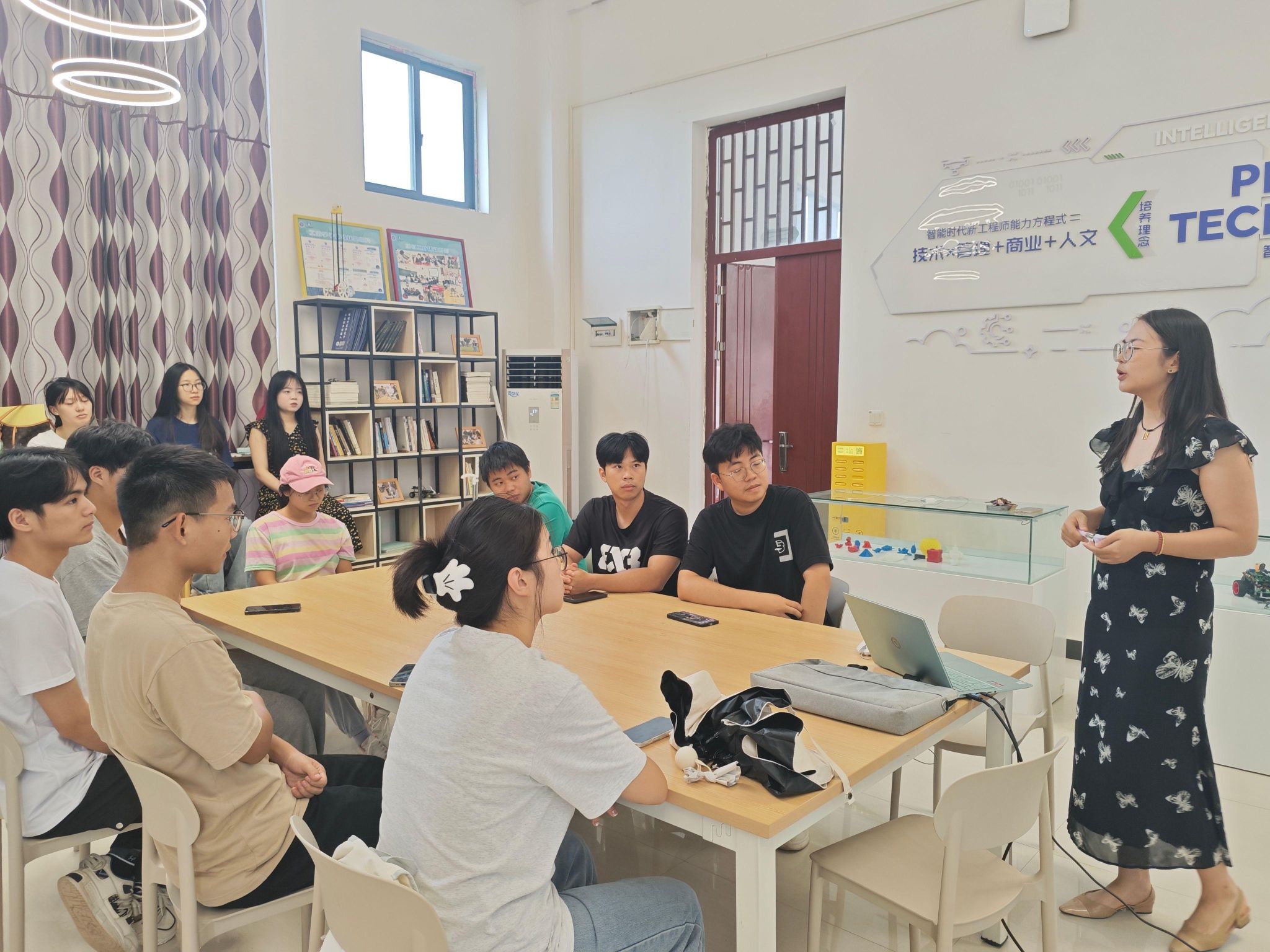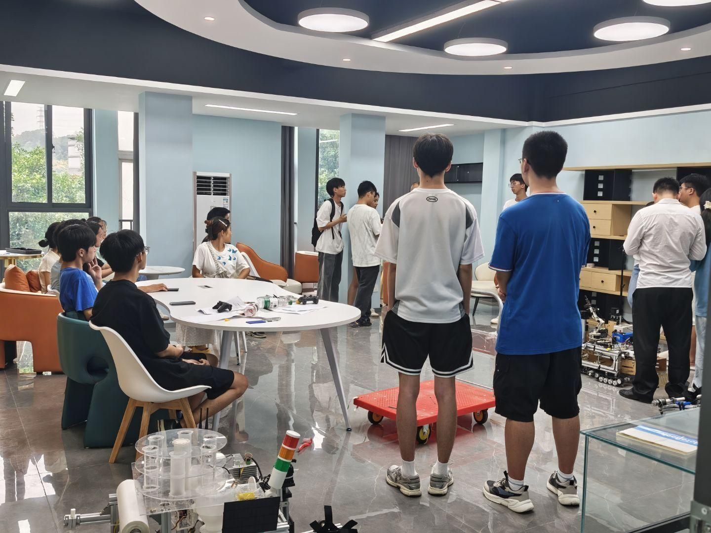 2025年9月,汇江书院特色项目工坊顺利完成新学期的全面更新与升级。本次升级后,书院共打造出9个在风格与特色上各具亮点的书院工坊,开展特色活动2期。工坊涵盖领域广泛,包括电子通信产品开发、无人机设计、创意版画、音乐创作、妆造设计等多个前沿与创意方向。以此为依托,书院正式推出以激发学生创新潜能为核心的“创造力发光计划”。该计划旨在系统整合各工坊资源,形成联动效应,为书院学子提供更优质、更系统的创造力培育平台,汇江书院未来还将在实践育人与创新教育方面继续探索。其中,9月17日,工创工坊开展了师生分享交流会。参与假期各项竞赛的师生团队分享了他们的参赛历程、创新成果与实战心得,现场交流热烈。9月3日,智控研发创新工作室师生就新学期的项目规划、学习目标与创新方向进行了深入交流,为后续系列实践活动的开展奠定了坚实基础。