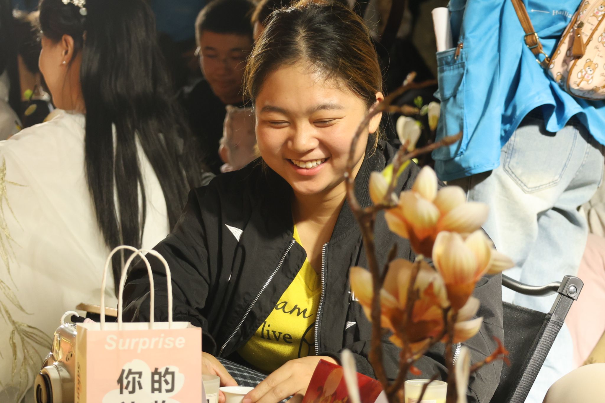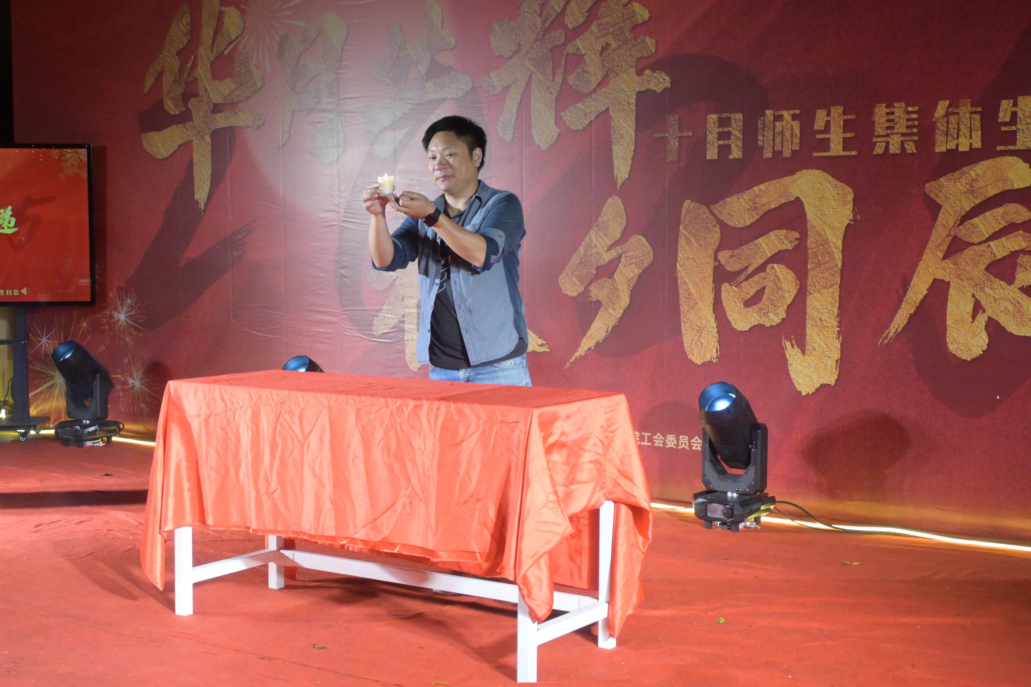 活动的尾声,校武术队的刚健表演展现了自强不息的民族精神。随后,“福缘流转”仪式将温情与祝福延续至极致。在寿星代表马克思主义学院姚黎华老师的引领下,祝福母盏被率先点亮,寿星代表们依次引燃手中子灯,并走向座区,为同伴传递光明。“一灯传一灯,灯灯不灭;一念传一念,念念相连。”顷刻间,全场福灯闪烁,如星河落人间,汇成一片温暖的光海。在场师生手捧福灯,共同许下对未来的最后一份祈愿。