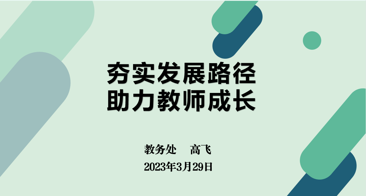 3月29日下午2点,“教师成长计划”系列专题讲座第三场在香樟书院多媒体教室成功举办,教务处处长高飞教授以《夯实发展路径,助力教师成长》为题做了主题分享。