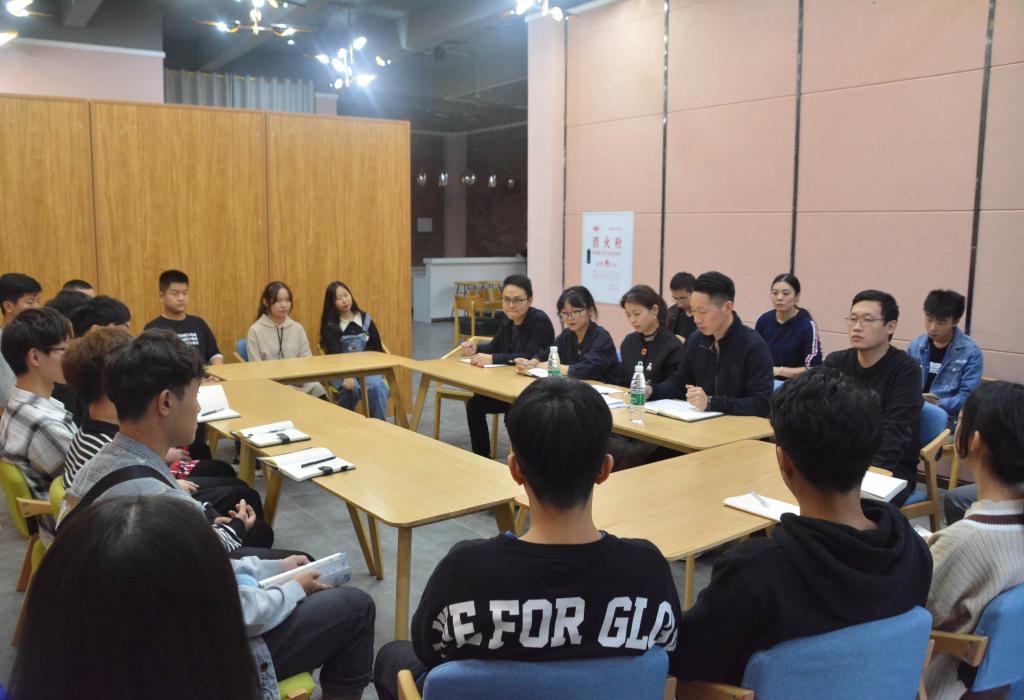 艺术传媒学院龚晓雪副院长、李克伟副院长、郑宇老师、刘根良老师、杨帆老师与2018辅导员李欢老师、叶进老师及2018级各专业学生代表们共同参与此次座谈会。
