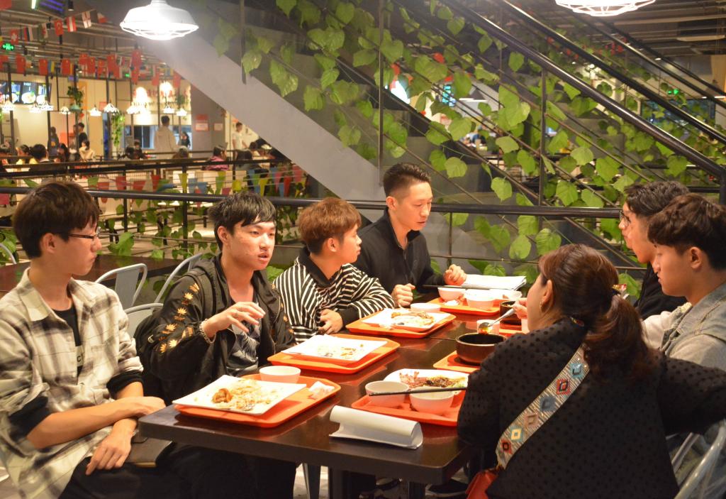座谈会的交流结束后,老师们与学生们一同移步A食堂二楼一同用餐,师生们如同朋友一样坐在一起畅谈大学生活。