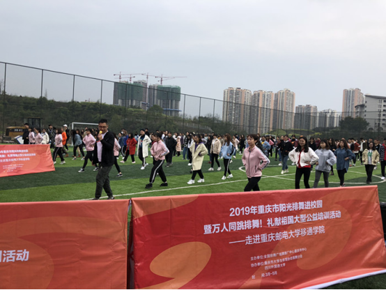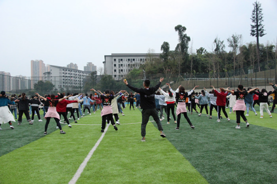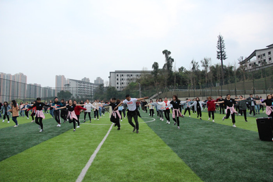 3月17日下午3点,2019年重庆市阳光排舞进校园大型公益培训走进重庆邮电大学移通学院活动在我校D区五人制足球场拉开帷幕。出席本次活动的有我校竞技体育中心体育训练部主任孙哲老师、体育活动部主任谈胜老师以及体育训练部校啦啦操排舞队教练王尚傲老师。担任本次培训导师的是来自重庆市排舞推广中心四川外国语大学副教授于乐老师及其学生助教为我们讲解与教学排舞。