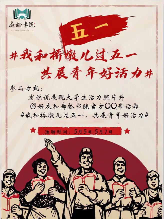 廊桥书院结合现学生的实际情况,更好的展示青年学子的朝气与活力,传承“五四”精神,特发起“我和桥墩儿过五四,共享青年好活力”风采展示活动,以学生本人为话题,采用图文的形式突出“青春活力”,并@廊桥书院官方QQ,在互动过程中,青年学子将生活、学习、工作等进行展示,在赞扬青春的同时,记录身边的青年故事;爱心、责任心,在他们身上呈现出来,在疫情期间,他们投身于志愿者,服务群众;他们的家人,放弃春节的团聚,选择坚持在自己的岗位上,因为他们始终坚信:奋斗是青春的底色。